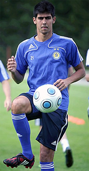 Более серьезные проблемы у Леандро Алмейды (на фото). В середине второго тайма поединка с «Локомотивом» у новичка команды «поехала» нога в скользкой от дождя штрафной площадке. Продолжить игру бразилец не смог. Предварительный диагноз - повреждение медиальной боковой связки колена.