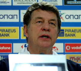 - Результат оставляет нам все шансы на то, чтобы решить задачу выхода в финальную часть чемпионата мира. Все вы видели, что мы забили гол, но, к сожалению, его не засчитали. Но у нас сегодня был очень хороший противник — мы об этом знали до матча, а игра это только лишь подтвердила. Особенно хорош был Тимощук. В целом же украинцы очень хорошо проявляли себя в контратаках. Что касается Карагуниса и Кацураниса, то я очень доволен их игрой в центре.