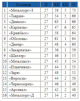 А вот по желтым карточкам «Динамо» является безоговорочным лидером — за 27 матчей столичные футболисты заработали 63 «горчичника». А благодаря удалению Зозули «Динамо» вошло в тройку «грубых» команд чемпионата.