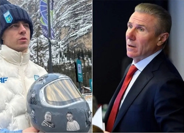 "Ліворуч на фото - український скелетоніст Владислав Гераскевич, який не зрадив свої принципи і не відмовився від "шолому пам’яті". Навіть ціною дискваліфікації. За що йому повага і підтримка українців. Праворуч - Сергій Бубка, член виконкому Міжнародного олімпійського комітету (МОК) і до того багаторічний очільник Національного олімпійського комітету.