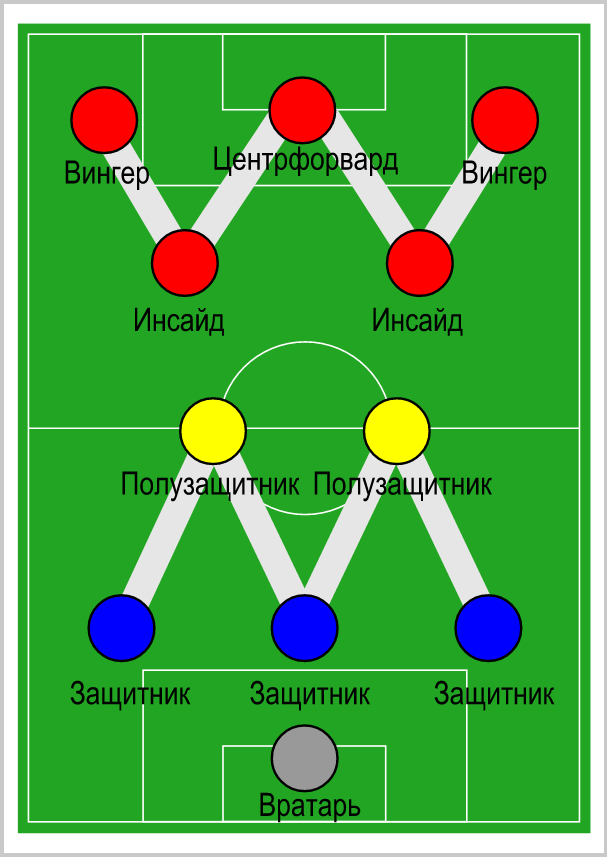 _Создатель: Герберт Чепмэн Использование: "Арсенал" Время: 1925 -1970-е Схема: 3-2-2-3 Комментарий: В основном так действовали английские команды. Впоследствии система стала известна в Европе. _