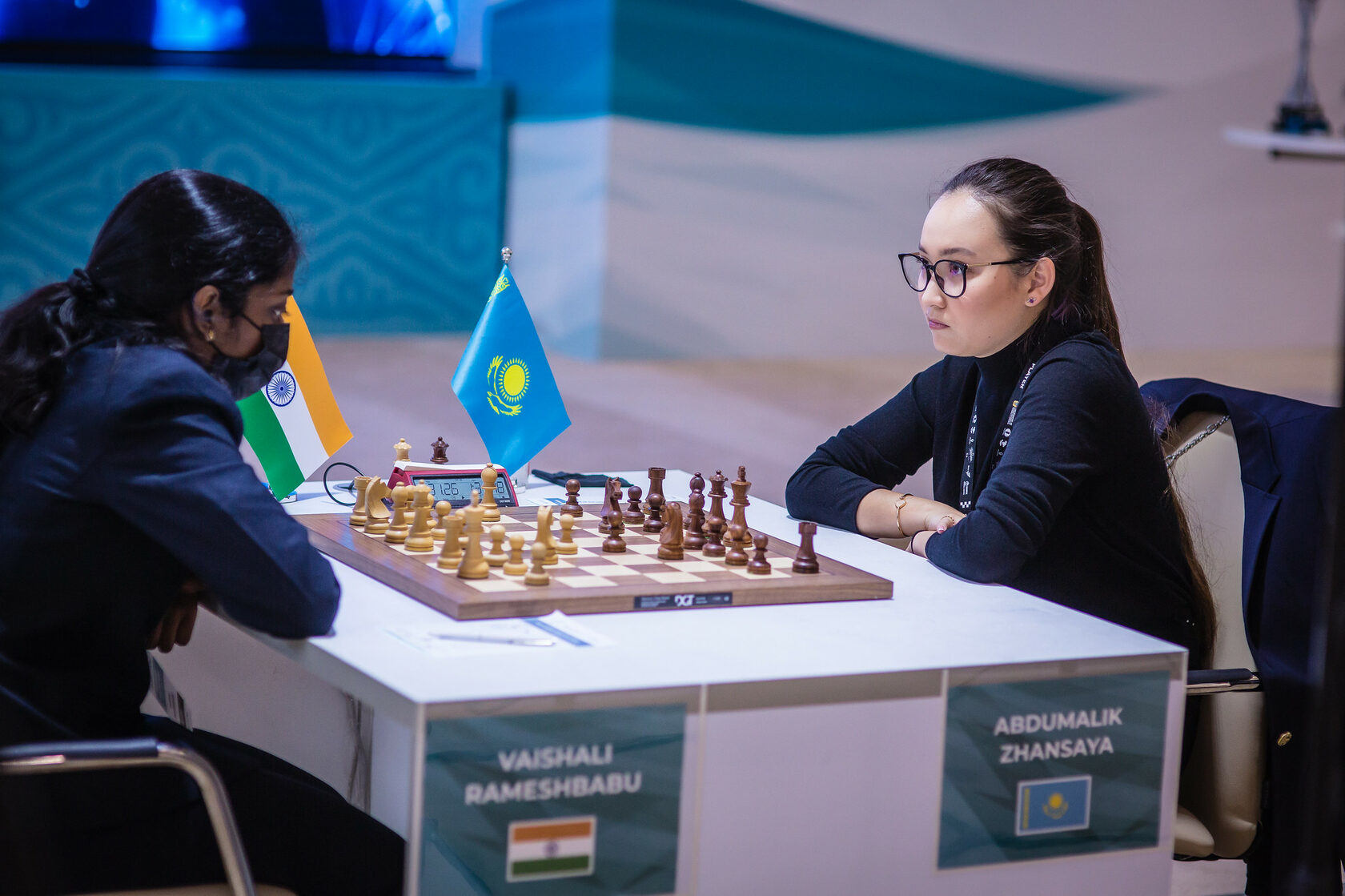 VAISHALI, RAMESHBABU - ABDUMALIK, ZHANSAYA, 8 ТУР, ½ - ½: