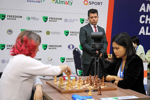 Tan (right) proved to be one of the most difficult players to beat in Almaty. Photo: Maria Emelianova/Chess.com.