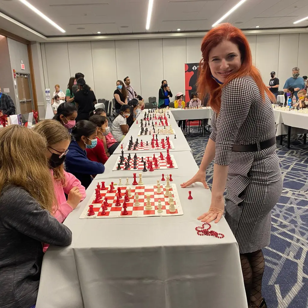 Jennifer Shahade (left) and Alejandro Ramirez are pictured at the 2012 United Way Chess Carnival.