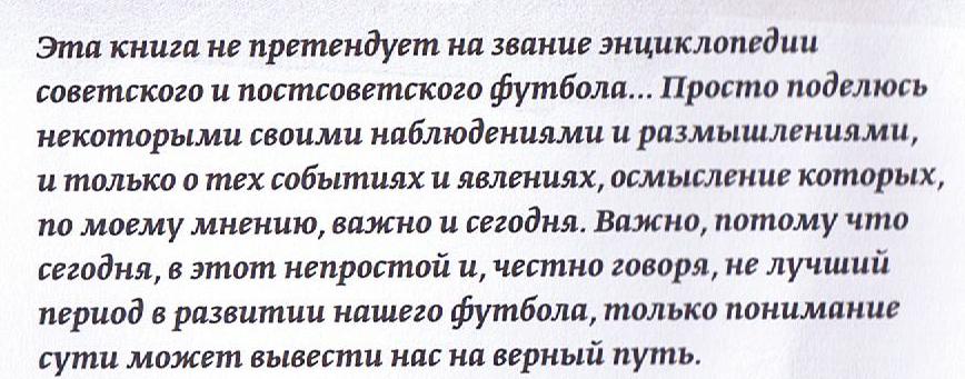По законам жанра хочется (и, думаю, должен!?), чтобы вы прочувствовали глубину этой книги и, с моей точки зрения, её желательную востребованность теми, кому дорог украинский футбол в наши дни, познакомить с некоторыми откровениями автора: