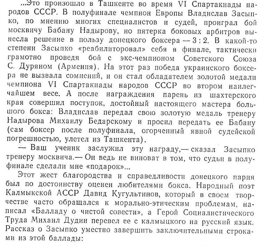 Не раз говорил и писал, что о человеке лучше всего говорят не его слова, а дела и поступки. Поступок, свидетелем которого мне довелось стать во время VI Спартакиады народов СССР в Ташкенте и совершил его