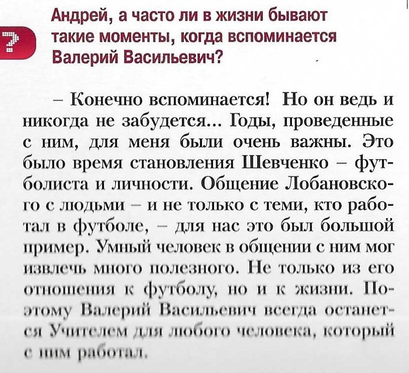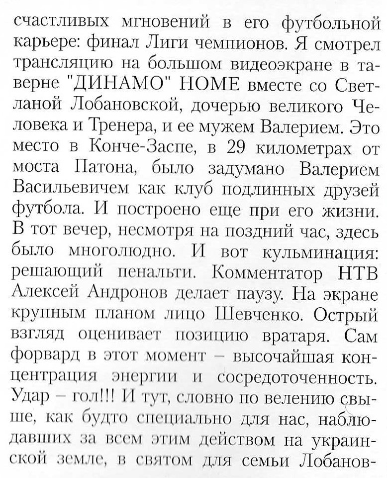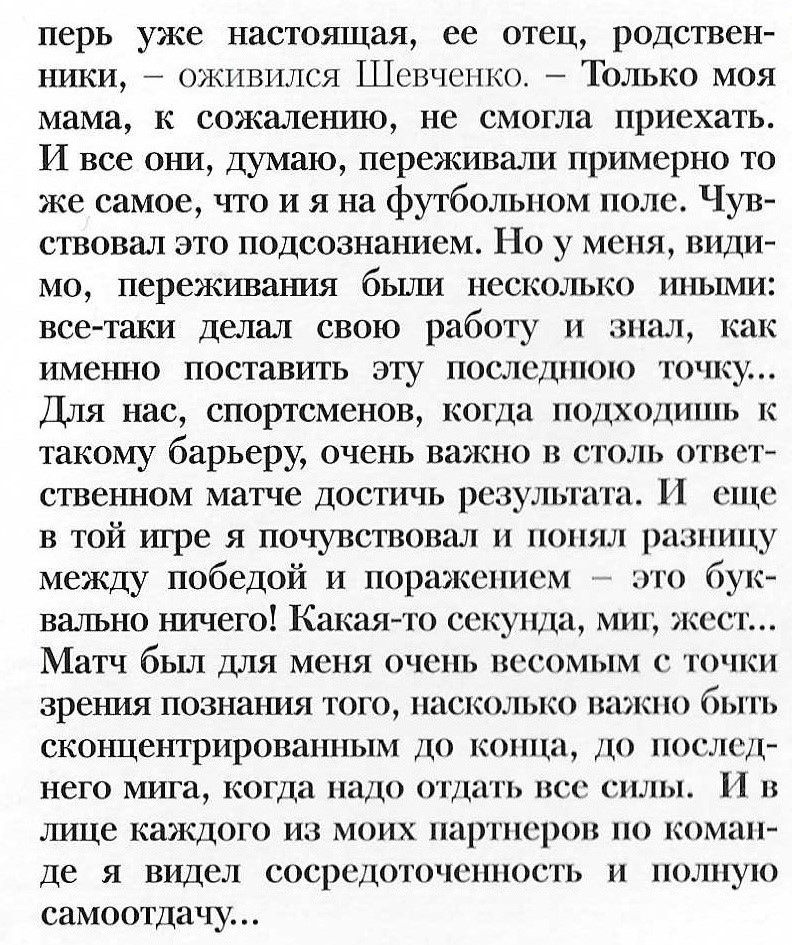 Банальность, но куда от неё денешься!? Летят годы. В тот вечер Андрей рассказывал о своих партнёрах по итальянскому "Милану", в лице которых видел сосредоточенность и полную самоотдачу. А я, слушая его тогда - более 20 лет тому назад! - и перечитывая материал сегодня, полагаю, в силу каких-то ассоциативных законов, вспоминал мои первые беседы с Шевченко под видеокамеру. Это было зимой 1996-го, в трудное для «Динамо» время. Когда