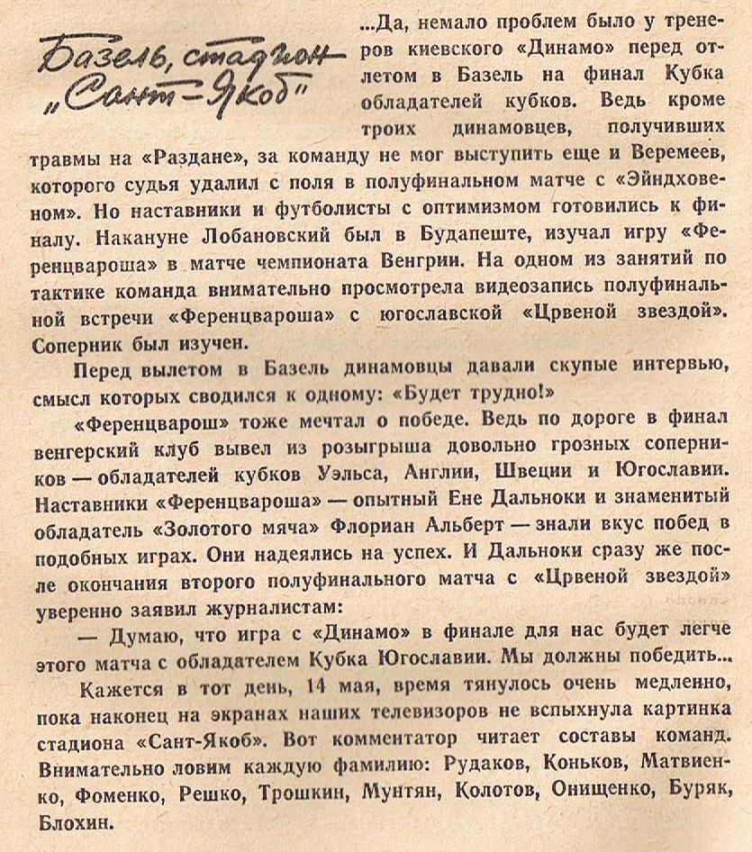 Небольшая глава о легендарных ДИНАМОвцах и их, с моей точки зрения, знаковой - во всех отношениях! - победе в финале Кубка кубков - 1975.