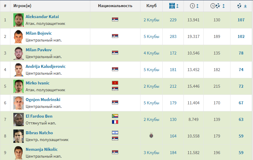 А як там, "у них"? Мається на увазі в країнах, які не належать до футбольної еліти і в тих, які майже одночасно з Україною здобули незалежність. Для прикладу, я взяв дані з "трансфермаркту" щодо Польщі, Хорватії, Сербії та Чехії. Але спочатку список п'ятірки найкращих українських бомбардирів:Тепер до європейців.