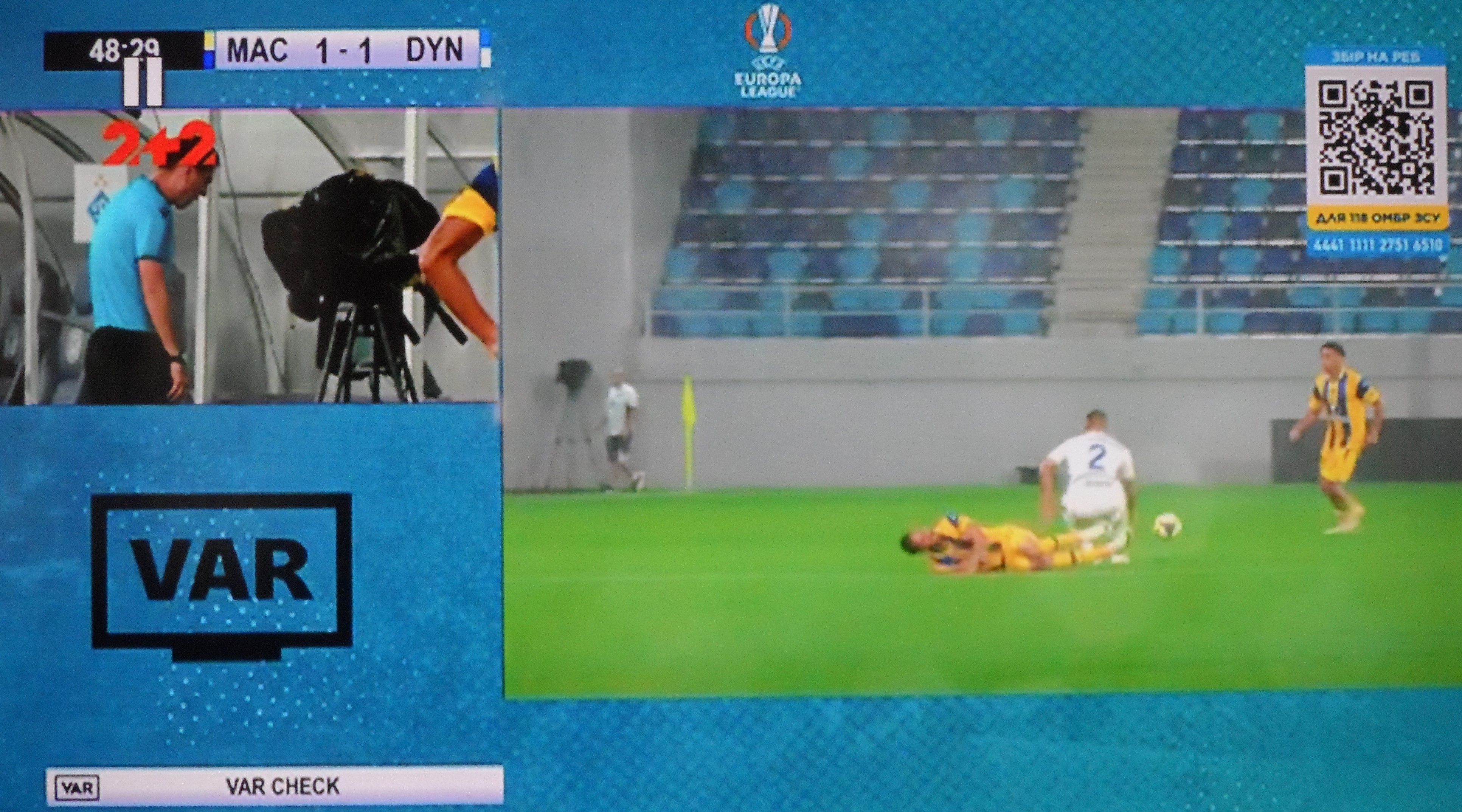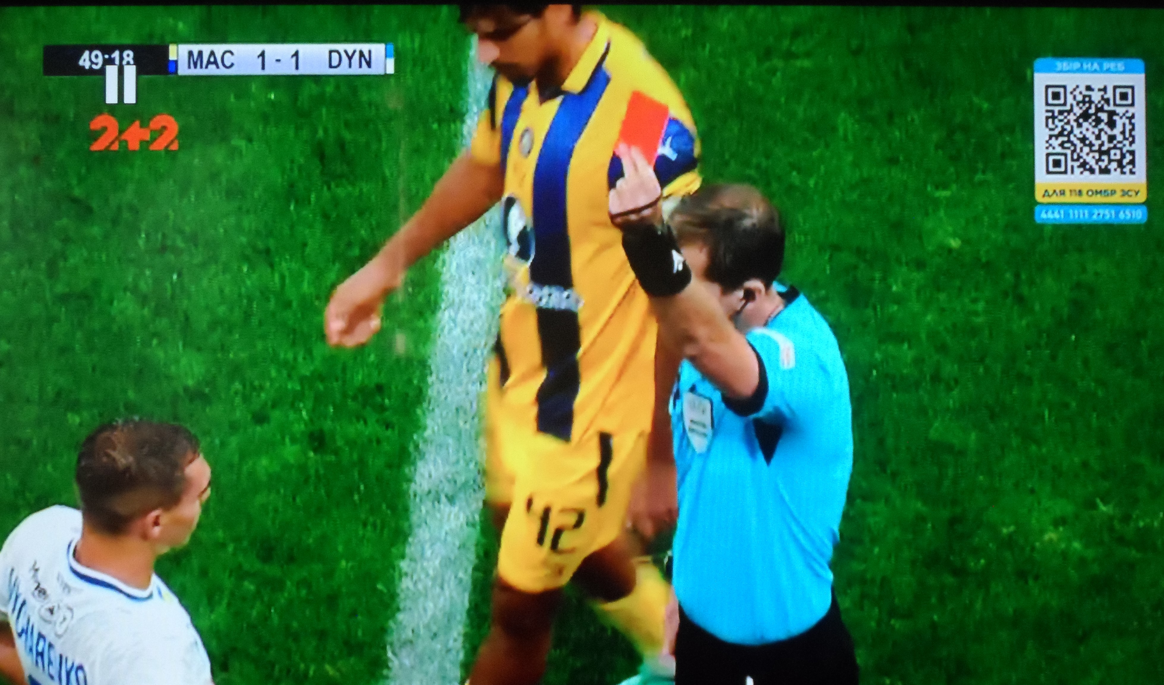 Вилучення! Після перегляду відеоповтору, головний арбітр вирішив показати пряму червону Вівчаренку за небезпечний підкат.