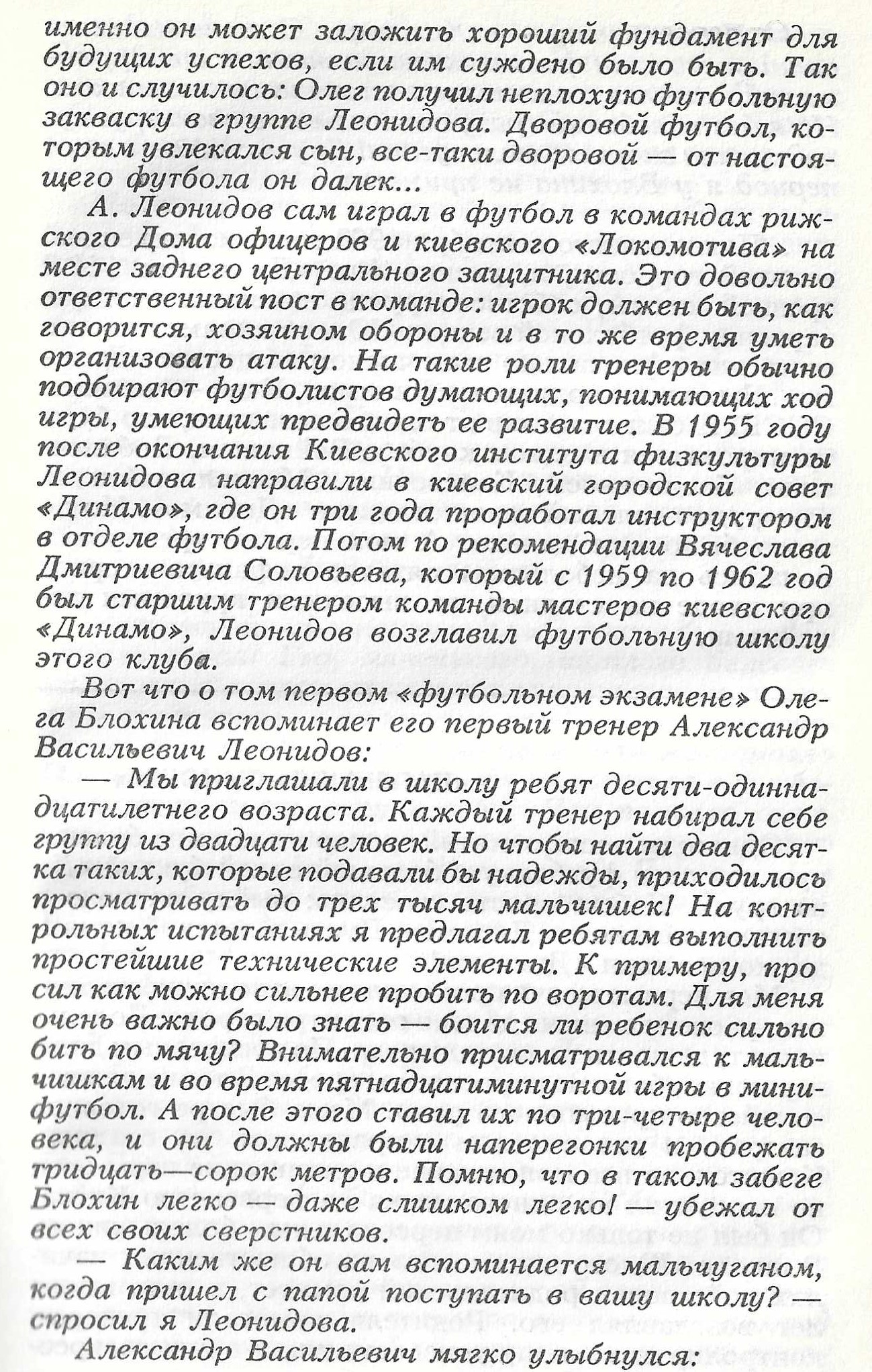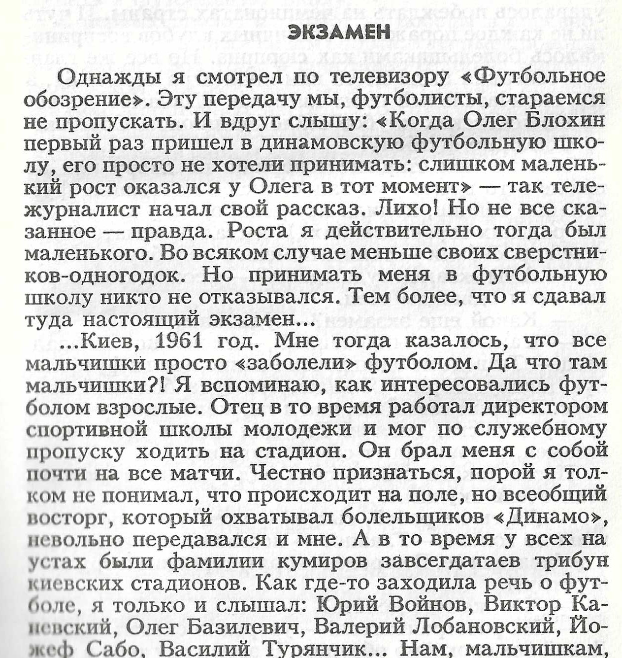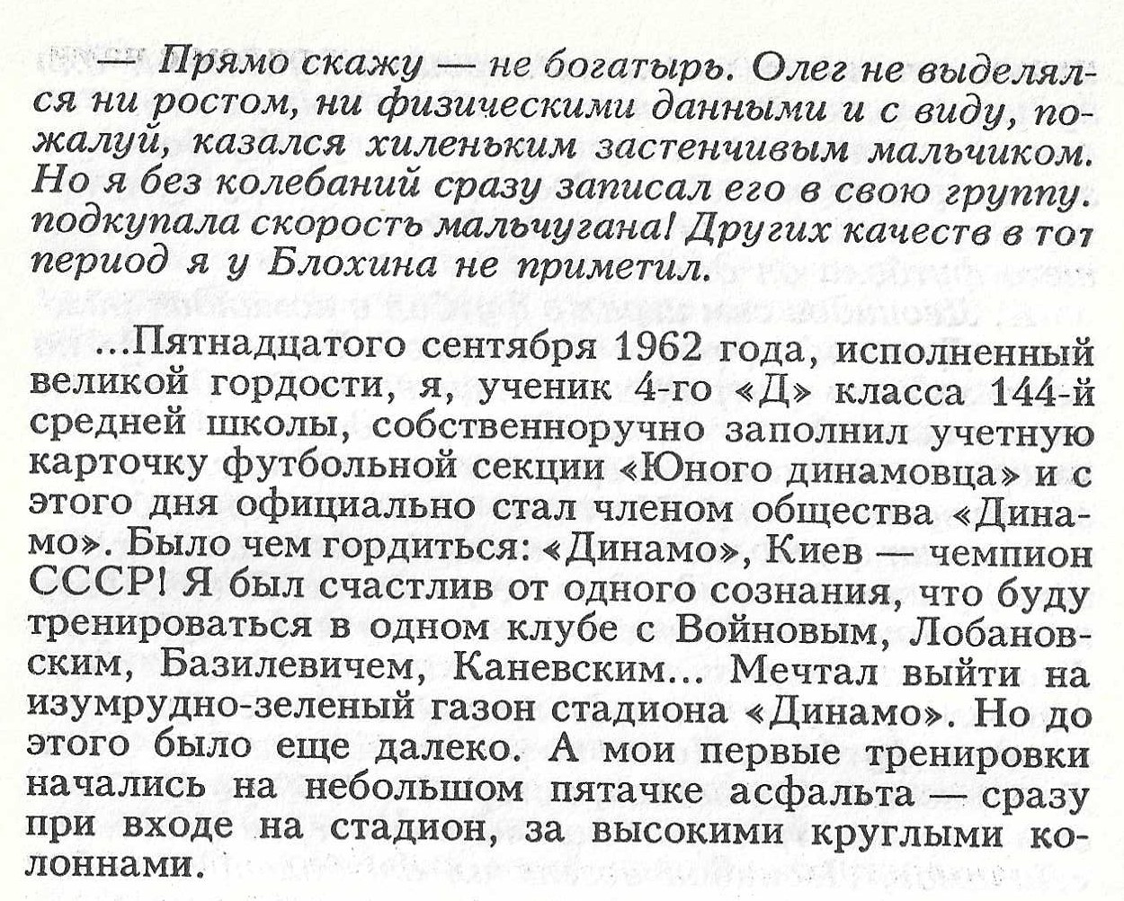 Познакомился с любопытством. Не всё так однозначно. Но процитировал для того, чтобы привести пример, как говорится, один к одному. Поступление 10-летнего Олега Блохина в динамовскую школу, куда его привёл папа. Киевские мальчишки (в тот день, порядка трёх тысяч претендентов!) играли в "дыр - дыр" на теннисных кортах стадиона «Динамо»...