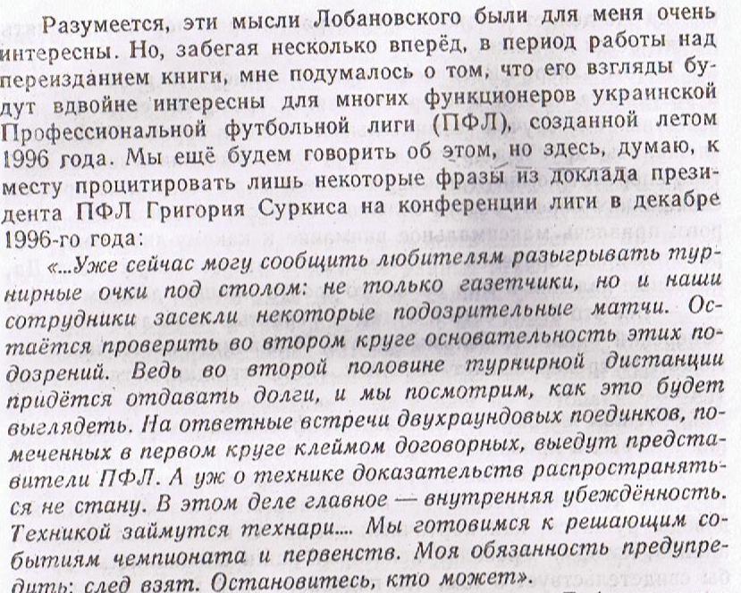 Уверен, когда эти строки будут читать представители футбольной публики тех давних лет, они легко догадаются, что в работе над докладом Григорию Суркису помогал один из его соратников Валерий Мирский. В ту пору он работал ответственным секретарём ПФЛ. К слову сказать, замечательный, на мой взгляд, журналист и, дай-то Боже, украинскому футболу - и журналистике! - побольше журналистов такого уровня...