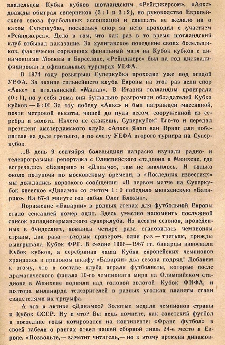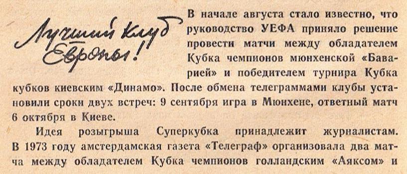 Полагаю, что болельщики со стажем, прочитав заголовок и названные темы, конечно же вспомнт первый матч за Суперкубок в Мюнхене. И этот легендарный состав киевского «Динамо» - 1975.