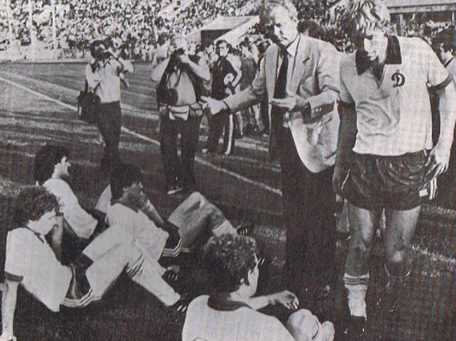 Рабочий момент славного «Динамо» -1986. Глядя на жест Васильича, невольно напрашивается текстовка: Дирижёр и его оркестр...