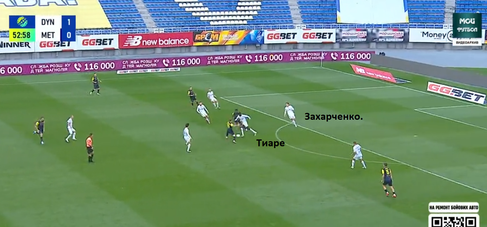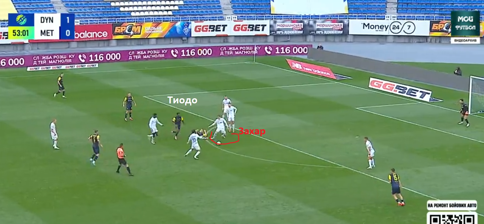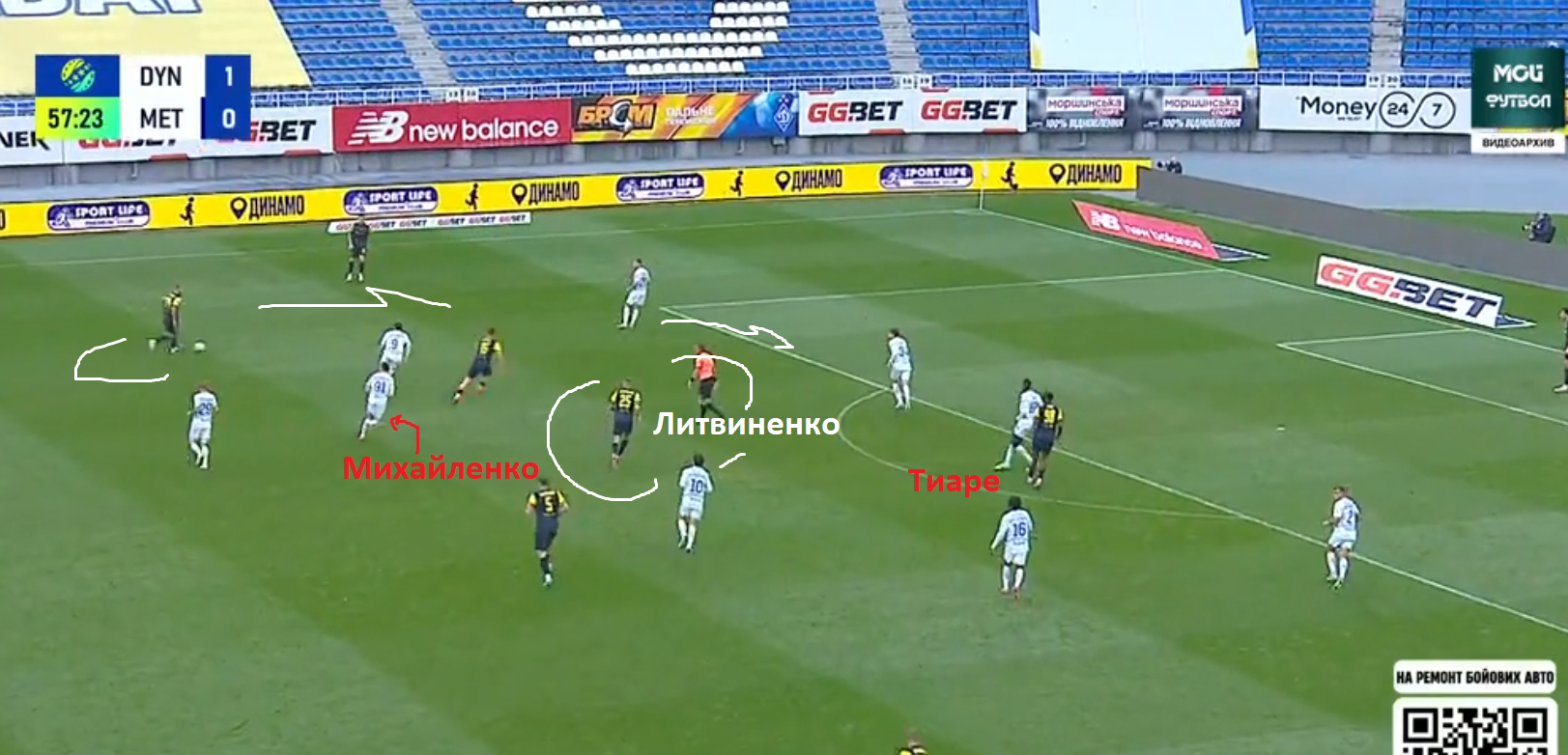 5 Михайленко выдвигается вперед, атакуя игрока Мет25, при этом оставляя зону без присмотра.