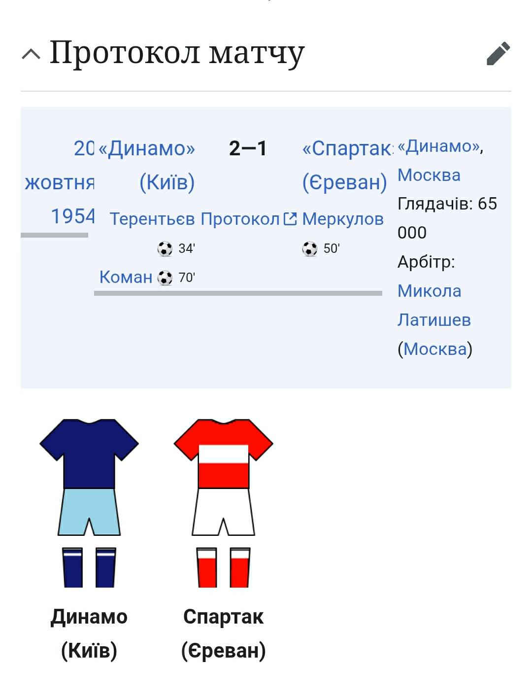 20 жовтня 1954 року, стадіон «Динамо», 65 000 глядачів.