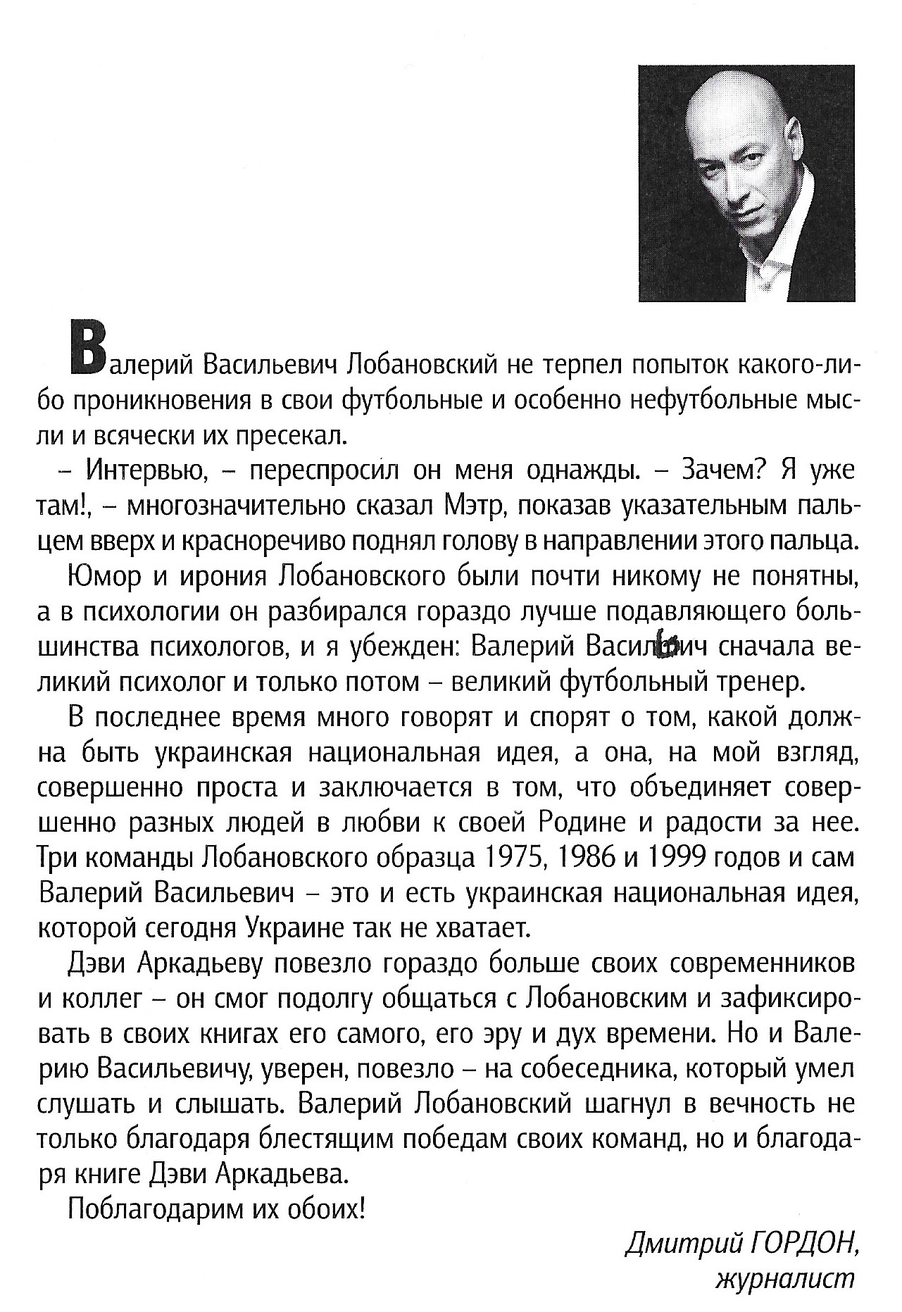 От всей души поздравляя Гордона с днём рождения, искренне желаю, чтобы услышанные или прочитанные им добрые пожелания, непременно сбывались под мирным небом нашей родной Украины! А по жизни и в творчестве, с учётом ДИНАМОвской «болезни» Димы, все мячи - только в чужие ворота...