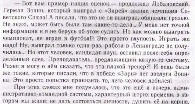 Кто в с е р ь ё з интересуется футболом и его специалистами, будет интересна точка зрения В.В.Лобановского о Германе Зонине, которую услышал от Васильича, о чём, к слову сказать, писал и в одной из своих книг: