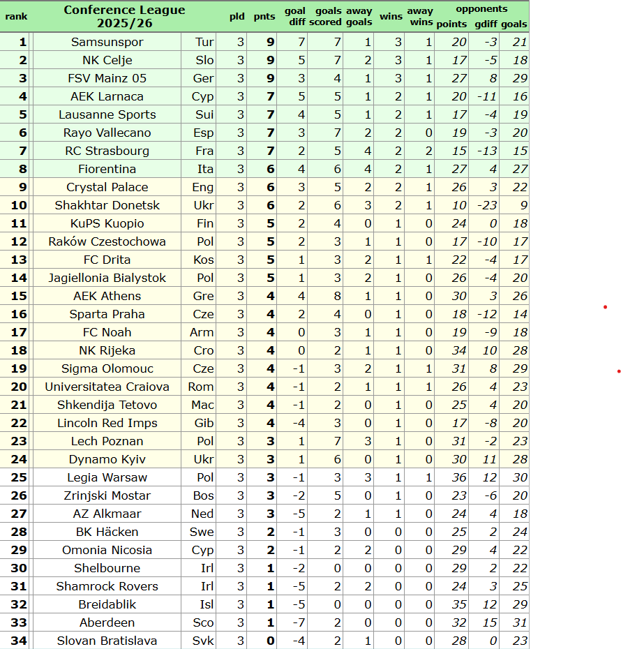 Наконец то прорвало , с первой крупной победой в еврокубках. Благодаря сегодняшней победе , а также самой результативной игре тура лиги конференций, ДК удалось подняться в турнирной таблице на 10 позиций с 34 места или третьего снизу , на 24-е место , что позволило уцепиться за последнюю ступеньку зоны 1/16 финала.