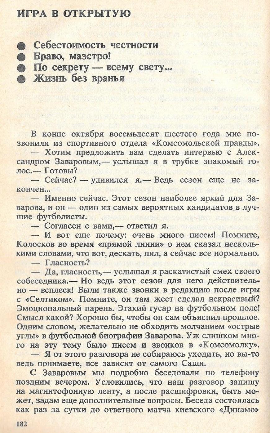 Заголовок соответствует истории того, о чём собираюсь рассказать. 11 ноября 1986 года, в «Комсомольской правде», нештатным корреспондентом которой работал в ту пору в Украине, озаглавленное «Игра в открытую», было опубликовано моё интервью с Александром Заваровым. Надо же, 39-летие?! Дата не ахти какая, если бы не бурные события вокруг этой публикации. С годами они подробно были описаны в одной из глав моей книги: