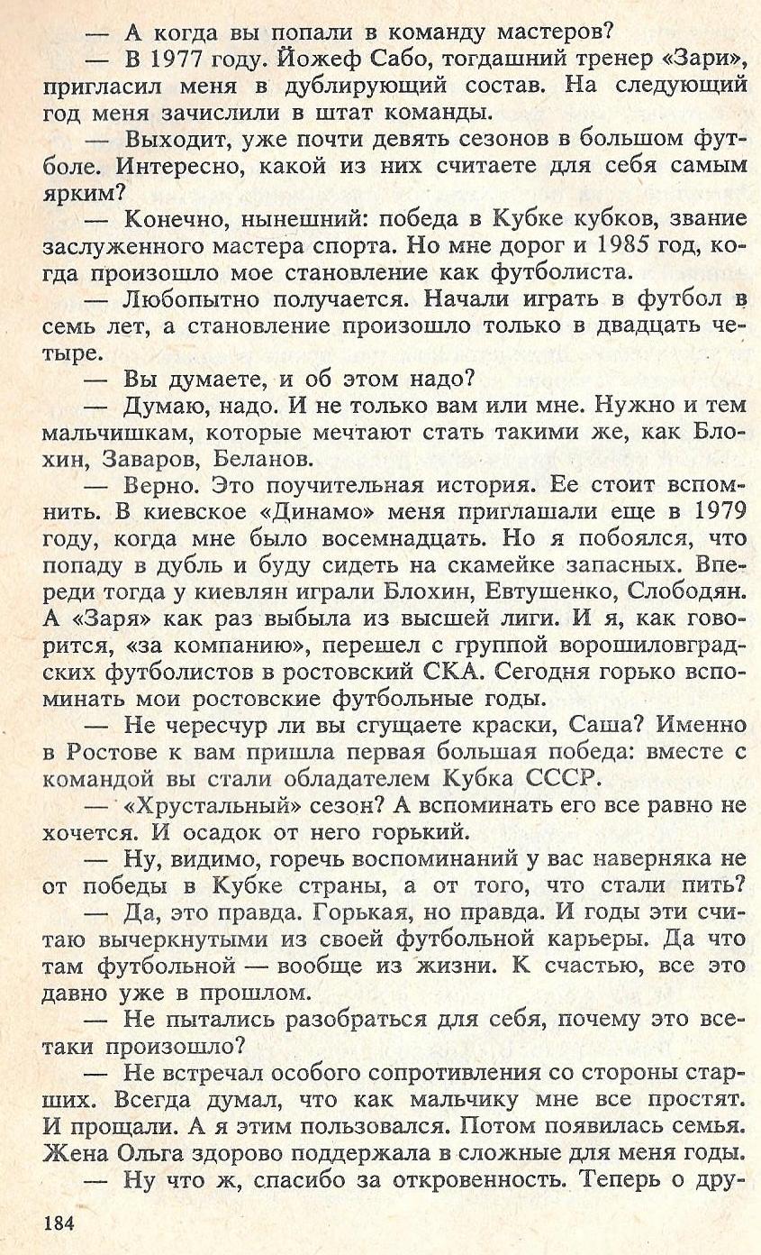 Заслуженный мастер спорта. Полагаю, что немало болельщиков со стажем с благодарностью вспоминают блистательную игру, слава Богу, здравствующего подлинно легендарного динамовца из состава команды-звезды «Динамо» - 1986, которому 26 апреля с.г. исполнилось 64 года.