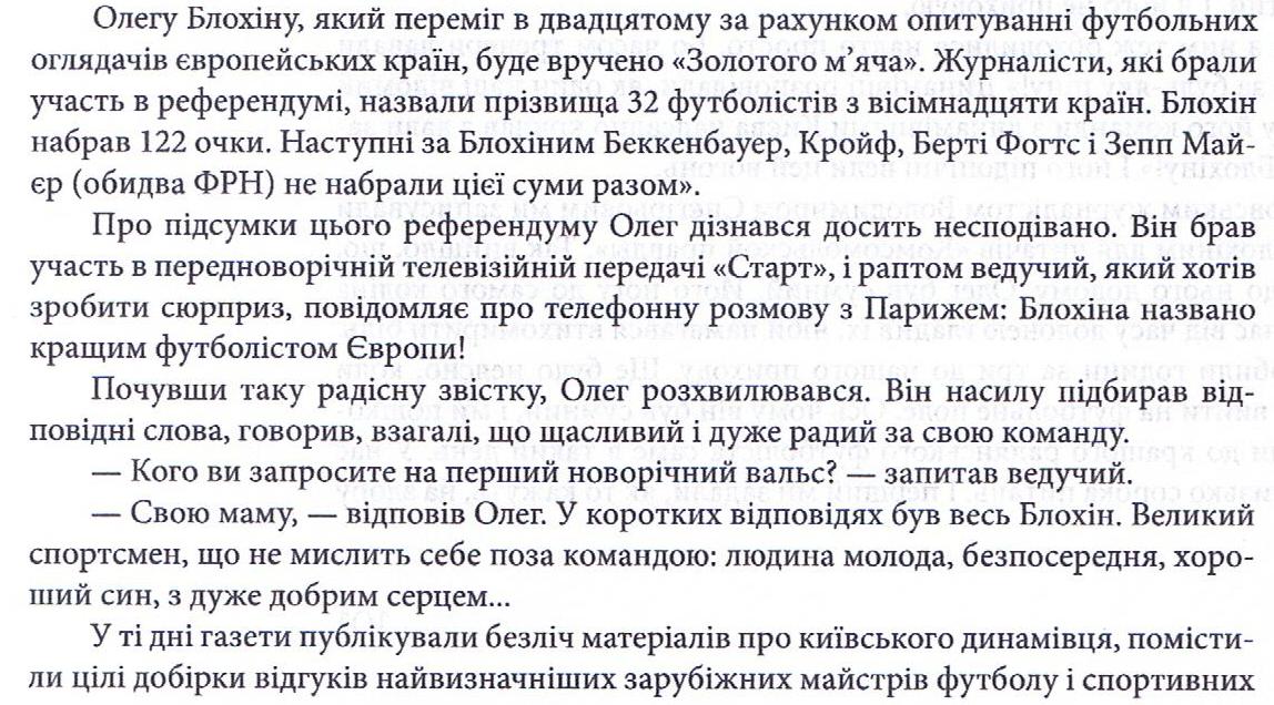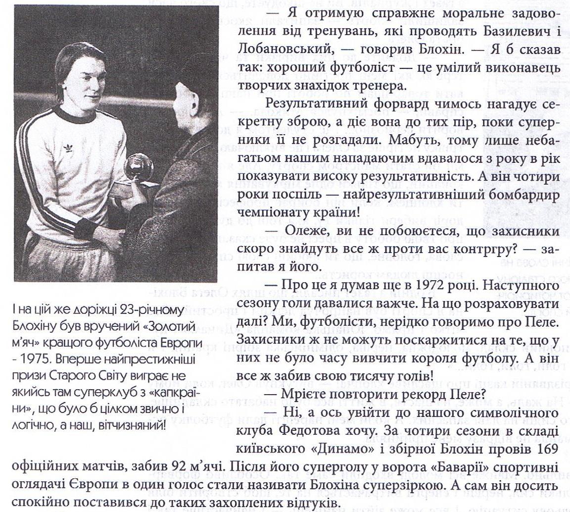 «Традиційний референдум, який проводить французький тижневик «Франс футбол», назвав 23-річного форварда київського «Динамо» та збірної СРСР Олега Блохіна найкращим футболістом Європи 1975 року.