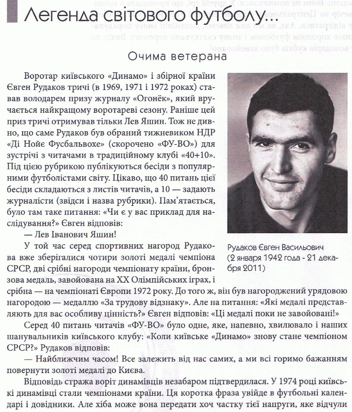 В день народження легендарного динамівця Євгена Рудакова, вашій увазі уривок з моєї першої книжки «Два сезона», яка в рік 45-річчя тріумфу «Динамо» -1975 перевидана українською мовою.