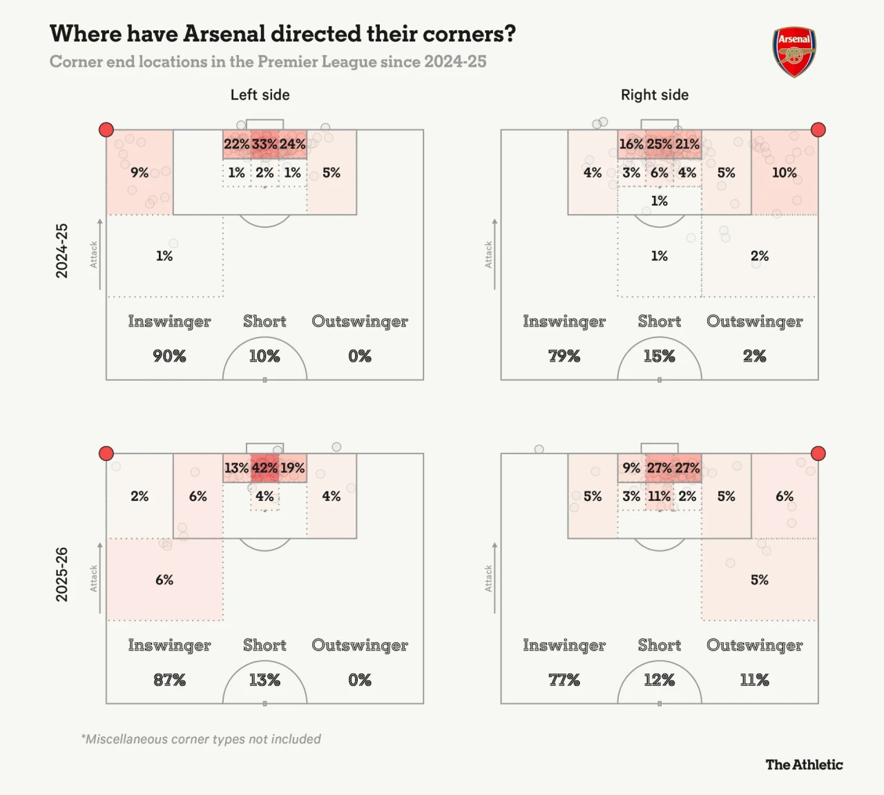 Зазвичай ці подачі летять сильно і спрямовані прямо у воротарський майданчик. Арсенал розставляє там 3,8 гравця – найбільше в АПЛ. Суперники ж, аби їх нейтралізувати, тримають у цій зоні 6,7 гравця. Уявляєте стовпотворіння?