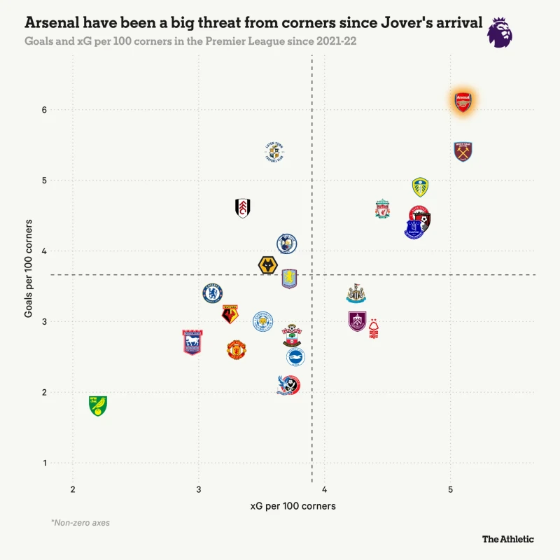 Арсенал Артети не виграє суто завдяки Жоверу, але без кутових лідерства в АПЛ би не було. Підхід баска надто обережний. Його "Каноніри" за пів сезону пропустили 43 контратаки на власні ворота – це 3-й найкращий показник в лізі, що ілюструє видатну дисципліну.