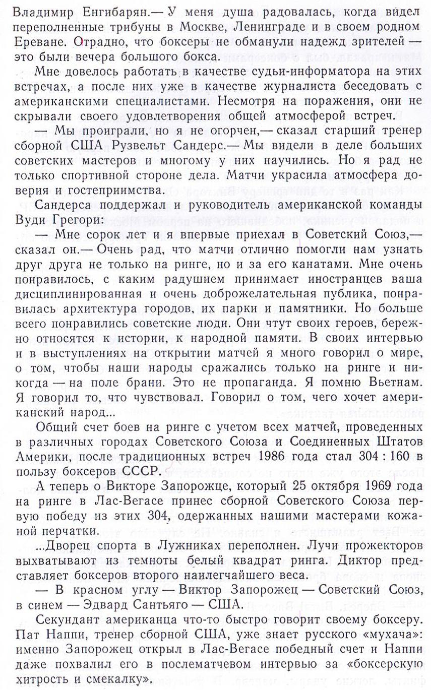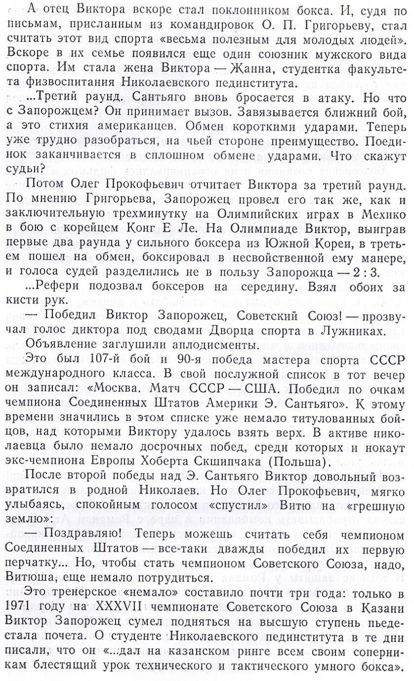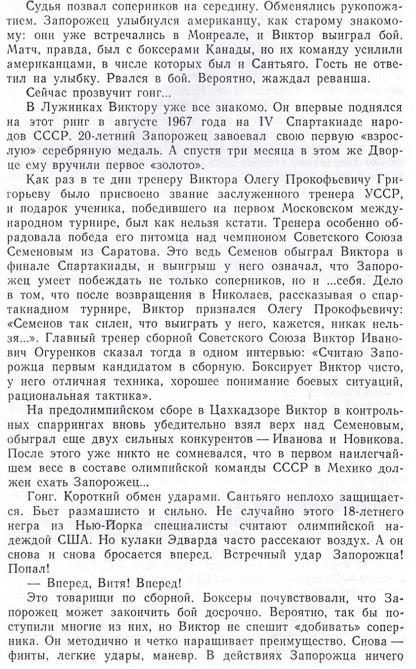 Вышла она без иллюстраций, только лишь на форзац попали снимки небольшого формата. Виктор ЗАПОРОЖЕЦ, отдыхающий в углу ринга во время перерыва между раундами, среди этих фотографий.