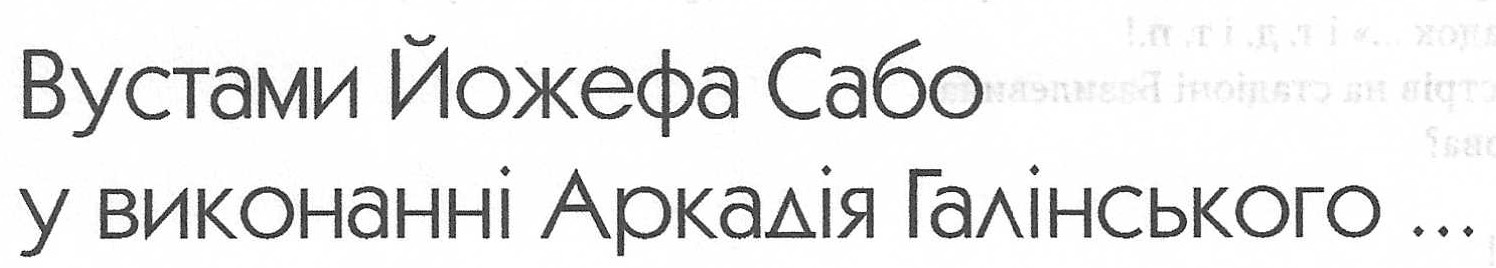 Одним словом, знайомлячись із фрагментами з післямови, автор якої значиться Йожеф Сабо, фактично ви читали рядки Аркадія Галинського (а це, нагадаю, був для нього тяжкий час заборони на професію). Звичайно, весь гонорар, отриманий у видавництві після виходу у світ моєї першої книжки, Йожеф віддав сповна А.Р. Галинському.