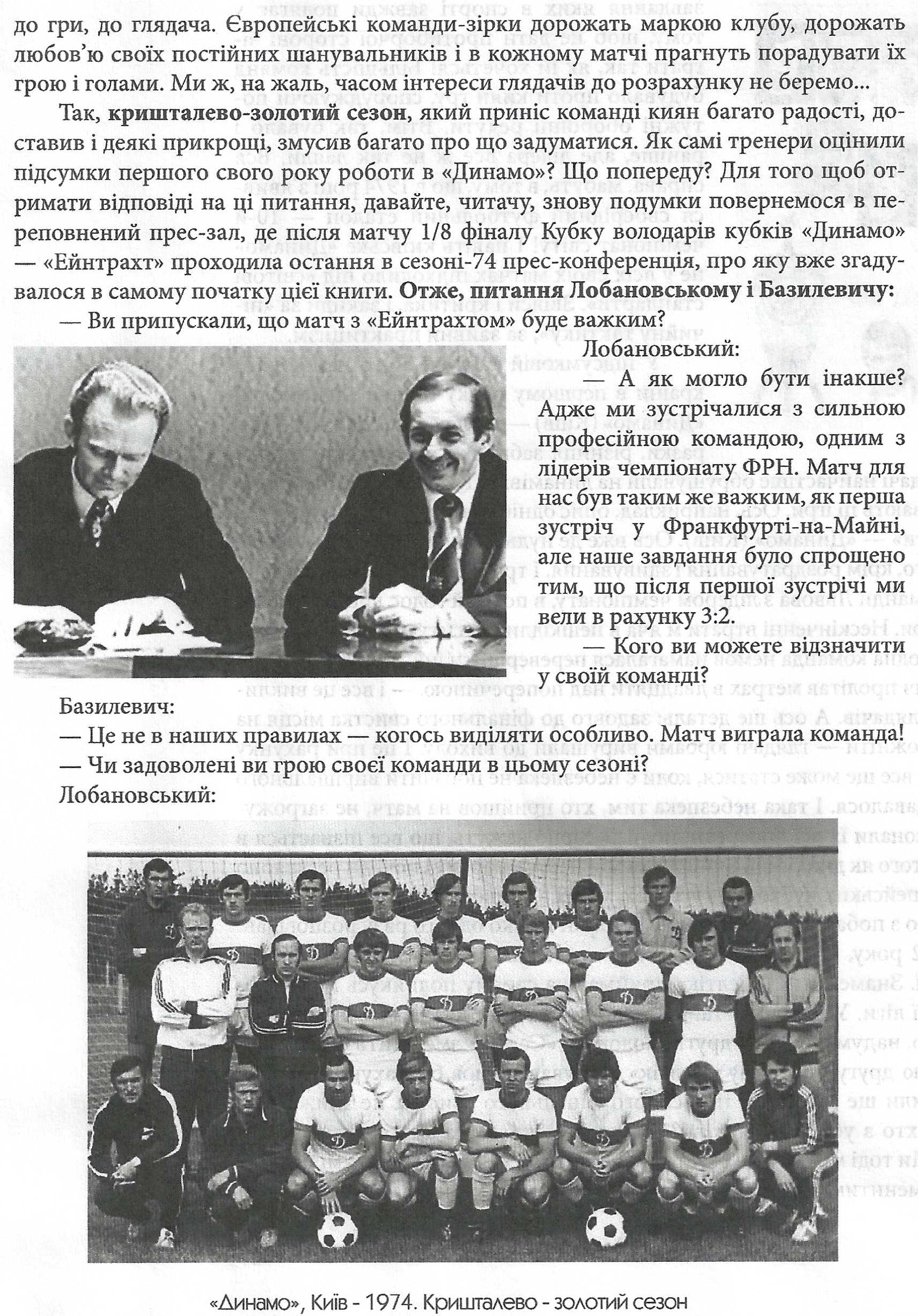 Вважаю, багато хто зі мною згоден у тому, що безцінний досвід роботи в київському "Динамо" тренерів - однодумців Олега Базилевича та Валерія Лобановського у двох легендарних сезонах 1974/75 років, не має терміну давності.