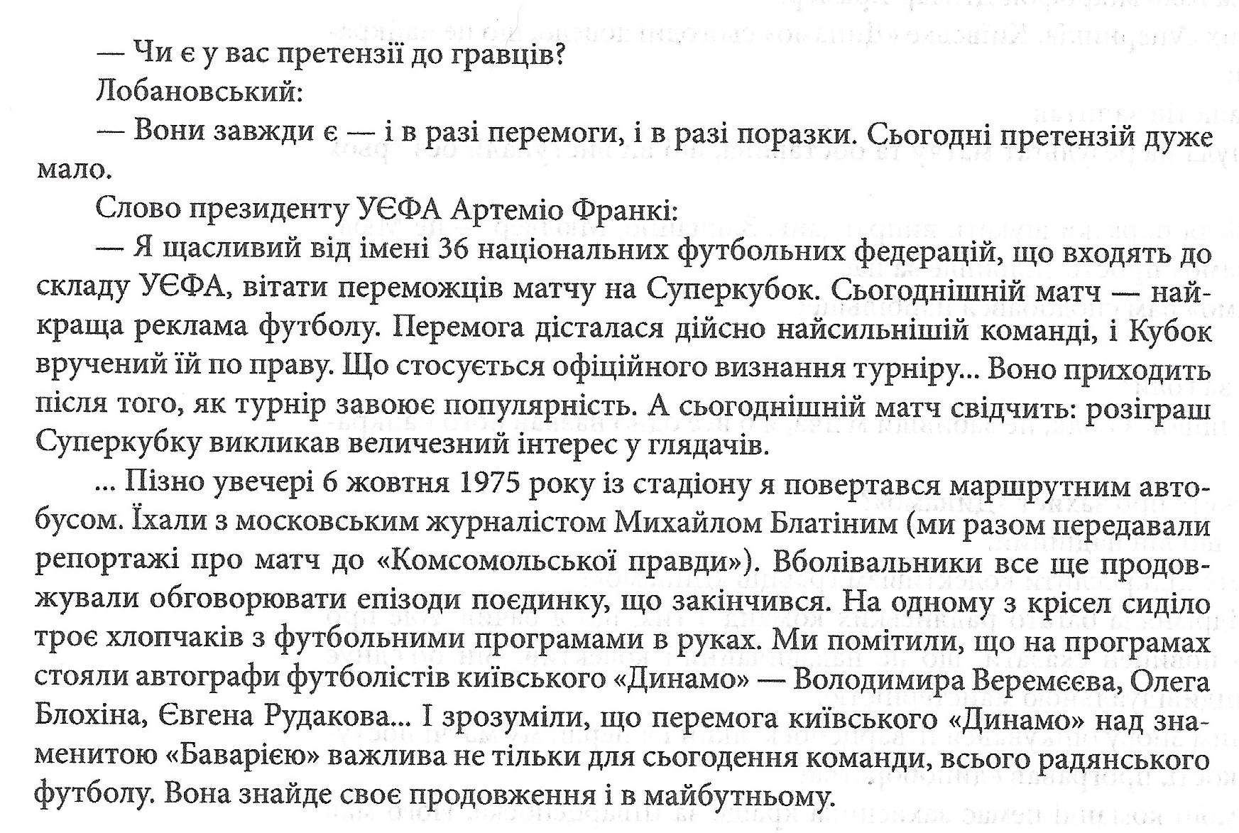 Шанувальникам, які народилися та виросли в незалежній Україні, пропоную прочитати державною мовою своєї країни. Фрагмент з моєї книги, опублікованої на 45-у річницю славних перемог «Динамо»-1975