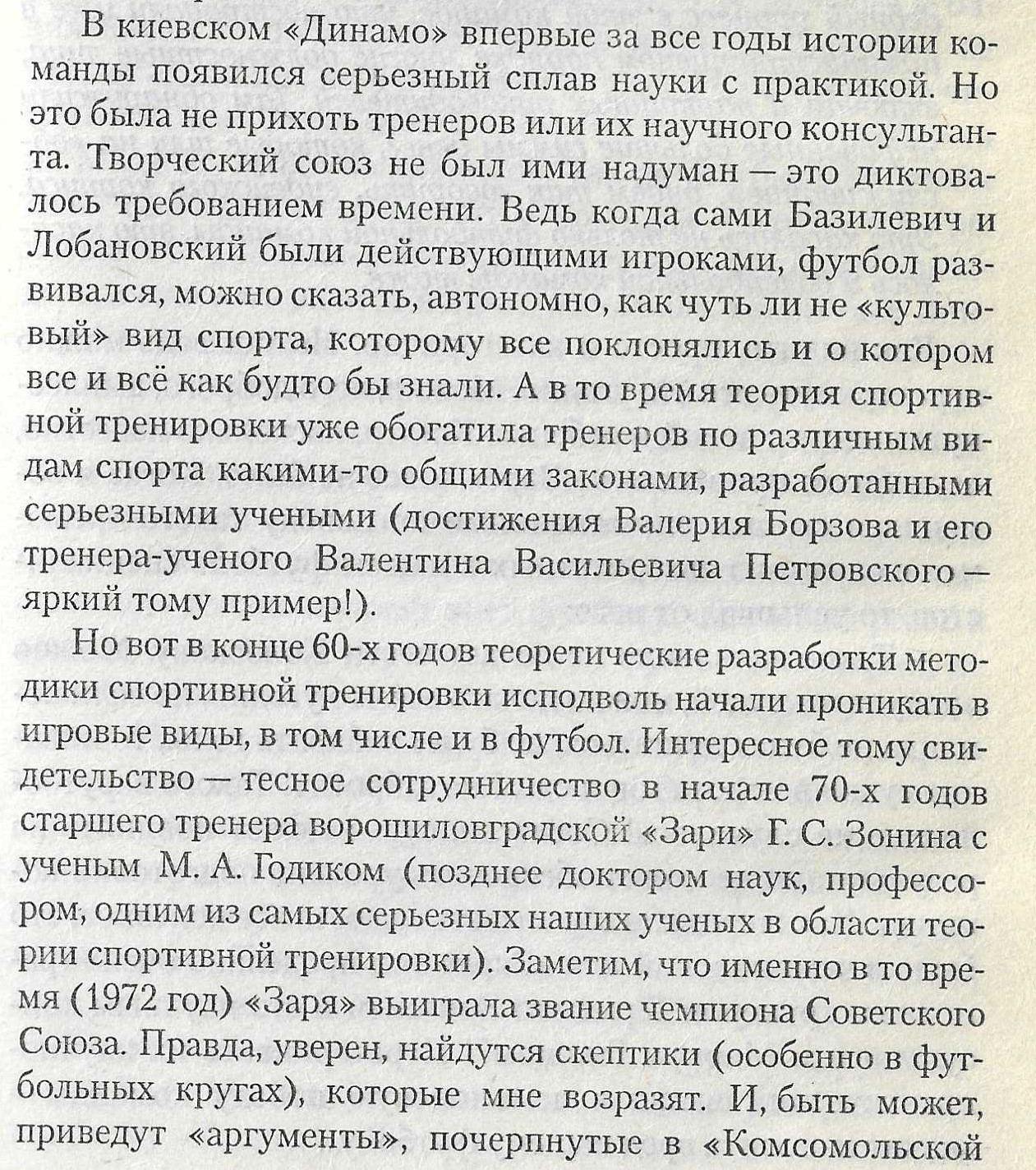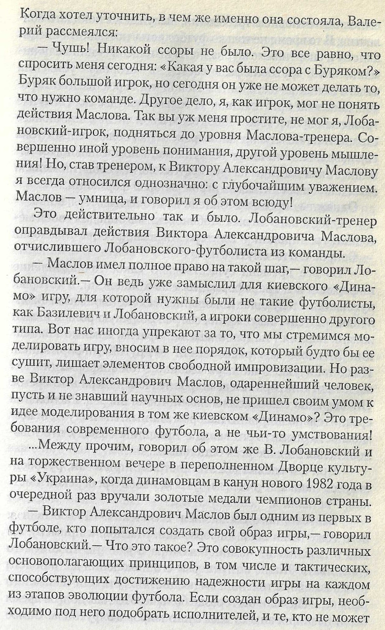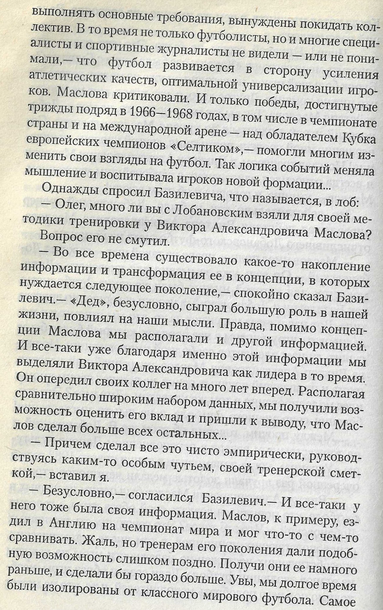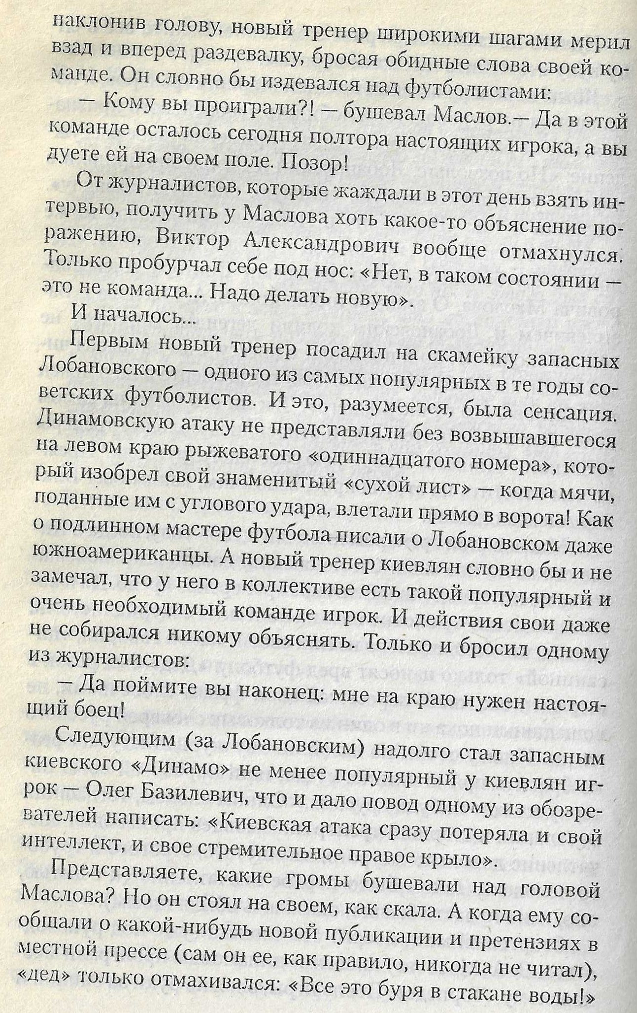 К примеру, Базилевич, рассказывал мне о том, как он с Лобановским переосмыслили роль «Деда» в их тренерских судьбах, о поездке на чемпионат мира - 1966 в Лондон Маслова, в ту пору старшего тренера киевского «Динамо». Мог ли Олег предположить, что сам - в такой же роли! - отправится на ЧМ - 1974 в Германию!? Впрочем, это уже другая история, рассказанная в этой же главе книги...
