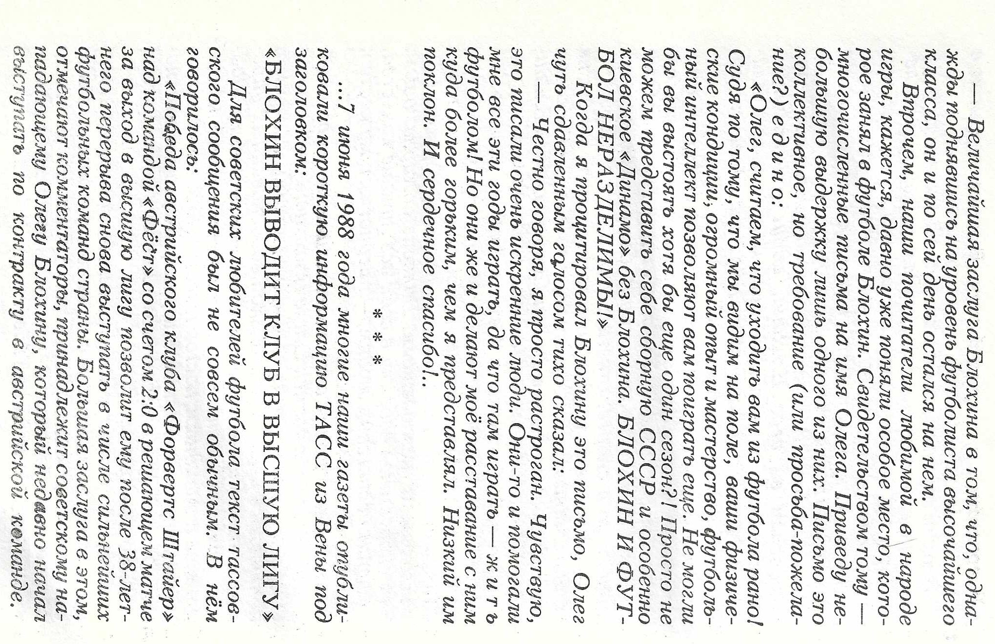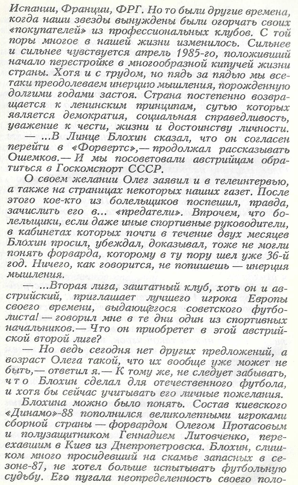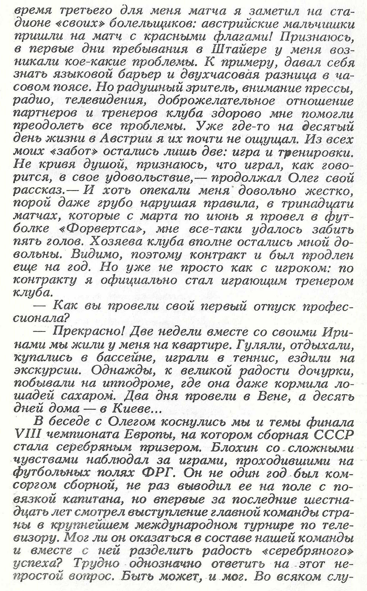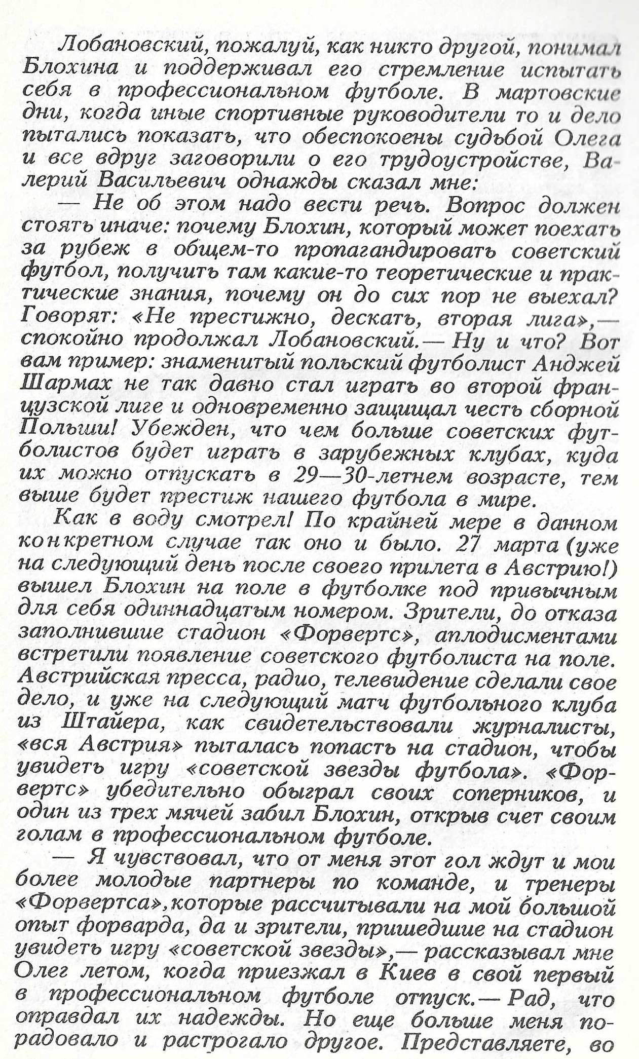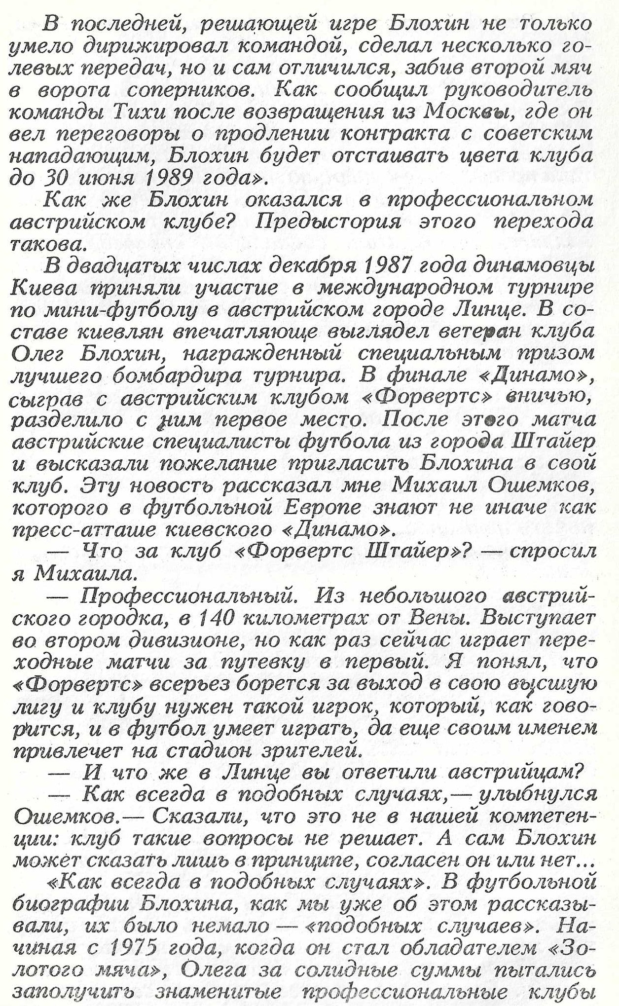 Напоследок откровение. С моей точки зрения, австрийский период работы Олега в «Форвертсе» не только помог нам «пробить» прощальный матч Блохина в высоких кабинетах первопрестольной, но и успешно провести в Киеве...