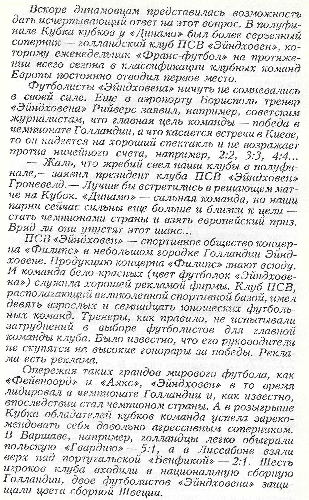 23 апреля 1975 года в Эйндховене состоялся ответный матч 1/2 финала Кубка Кубков, в котором местный ПСВ принимал киевское «Динамо». Напомню, встреча завершилась победой хозяев поля - 2:1, но в финал вышли киевляне, которые в первой встрече победили со счетом 3:0.