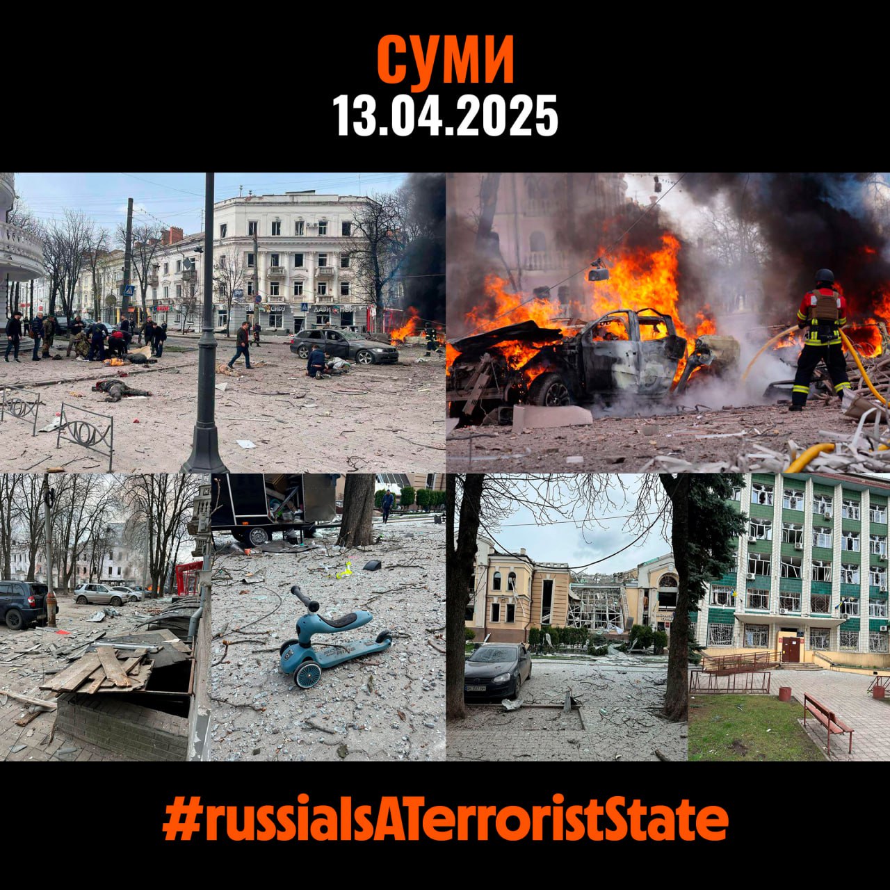 In the morning of Sunday, April 13, Russian terrorists launched a ballistic strike on the city of Sumy. According to preliminary information, at least 21 people were killed, and more than 20 were injured.