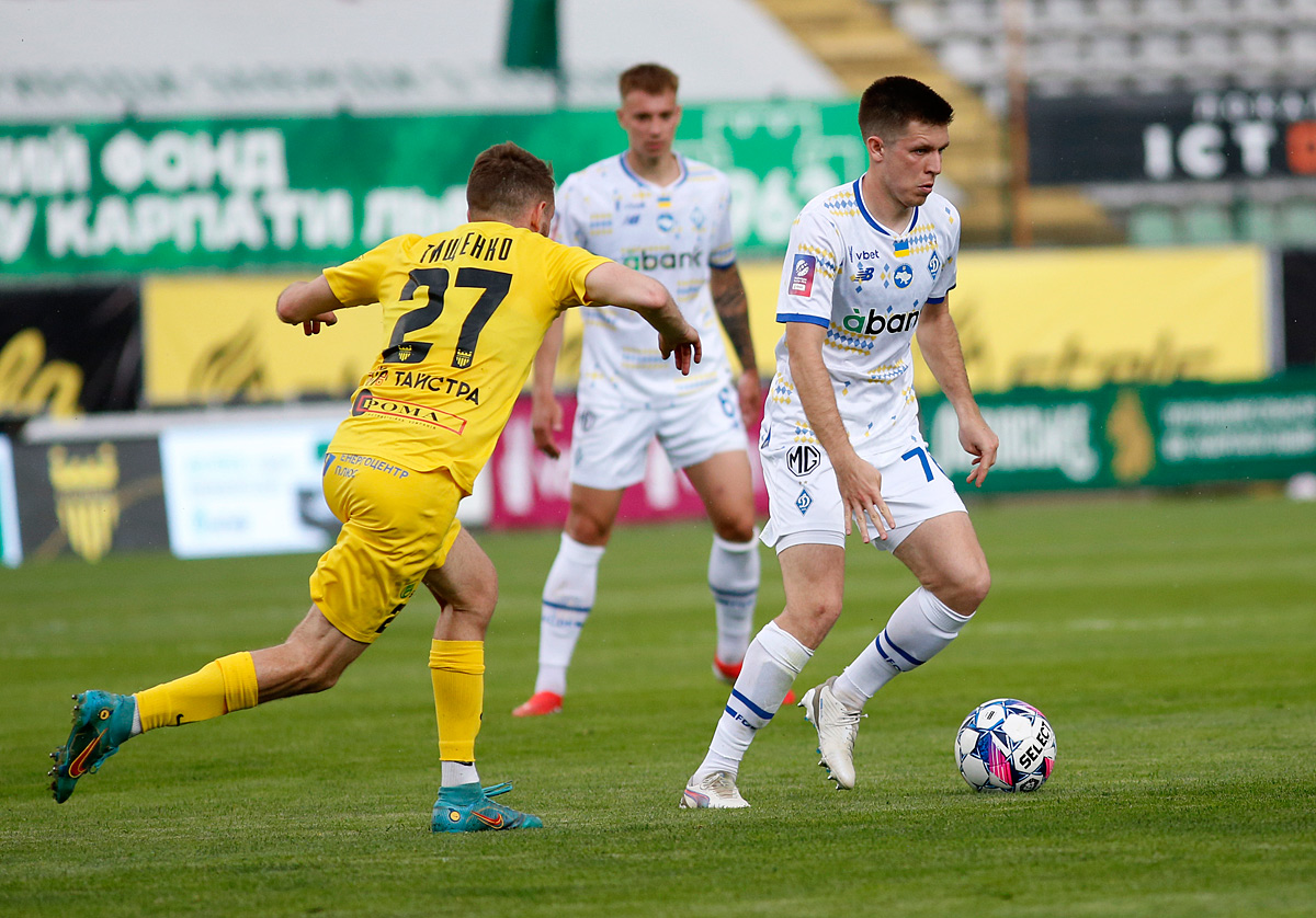 Of course, such a development of events somewhat shocked our team, and therefore the Dynamo players immediately rushed to catch up. Immediately, another gorgeous moment was missed by Rubchinskiy: playing a wall with Yarmolenko in the opponent’s penalty area, he found himself one-on-one with Kanevtsev, but instead of passing to the empty net to Guerrero, he decided to shoot — right into the goalkeeper... The first half ended with a series of corner kicks near the "Bukovina" goal, but without results for the “white-blues.”