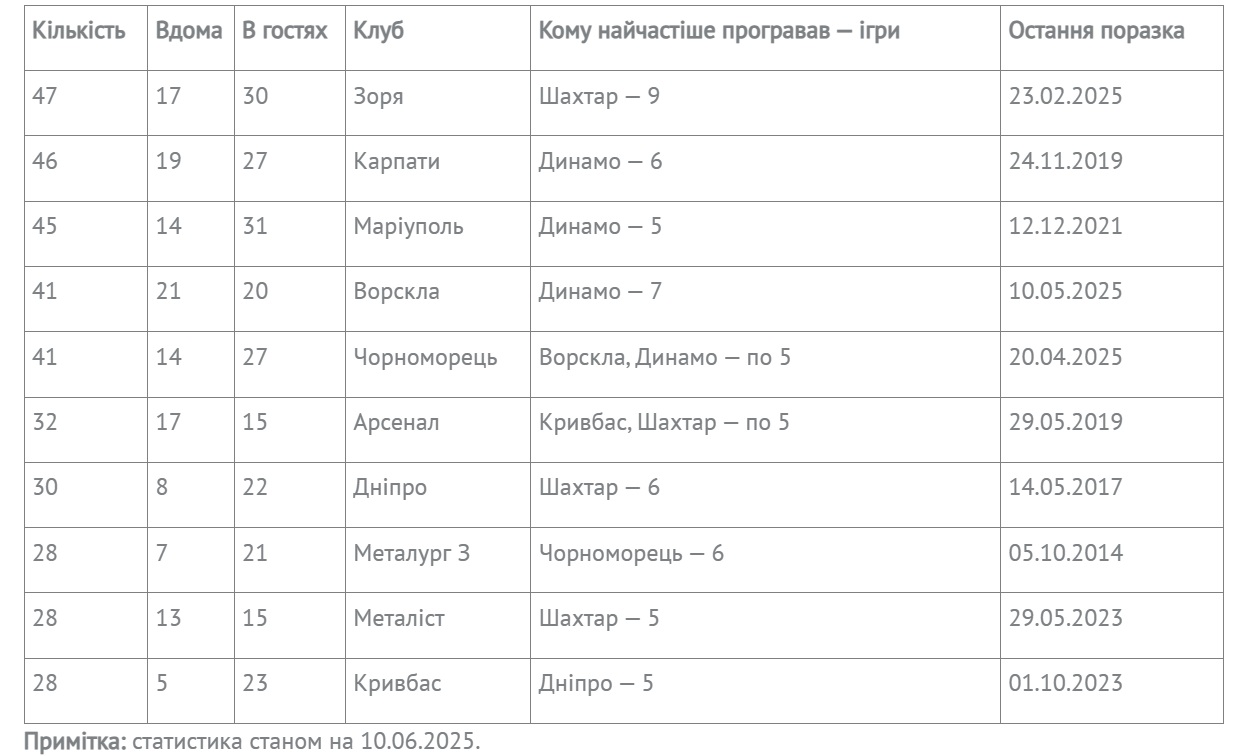 Clubs with the most disheartening defeats in the Ukrainian championship