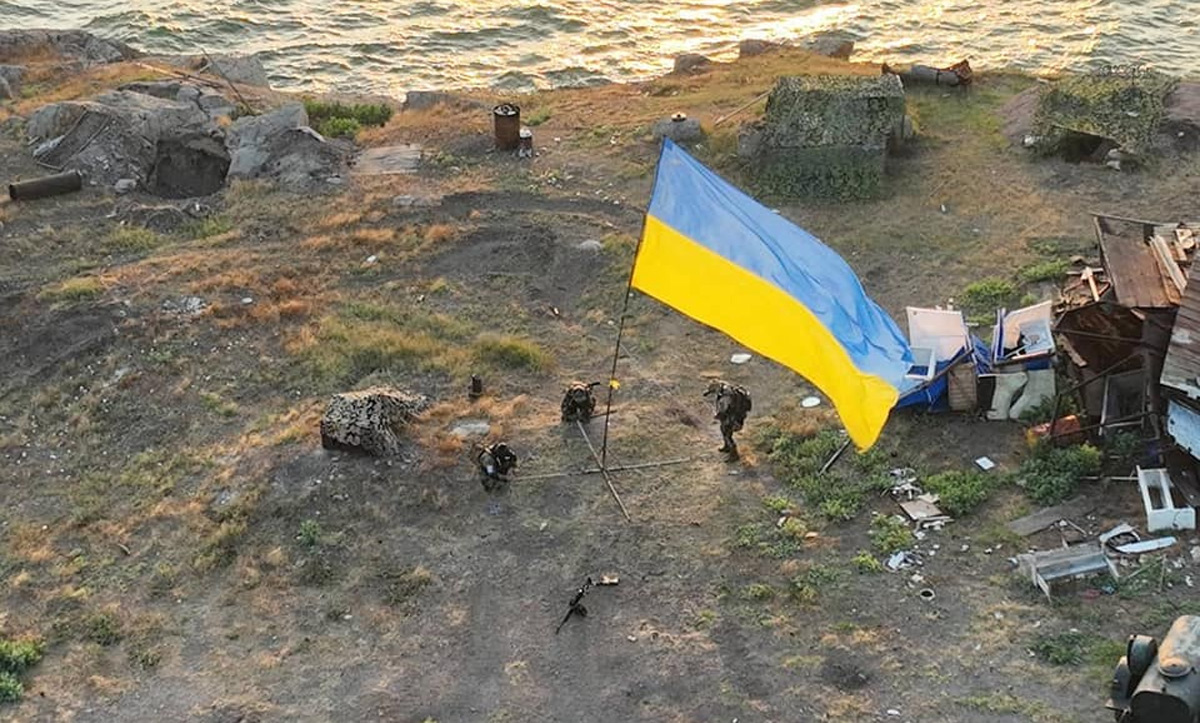 Украинские бойцы установили флаг Украины на острове Змеиный, откуда, напомним, не так давно были изгнаны оккупационные войска РФ.