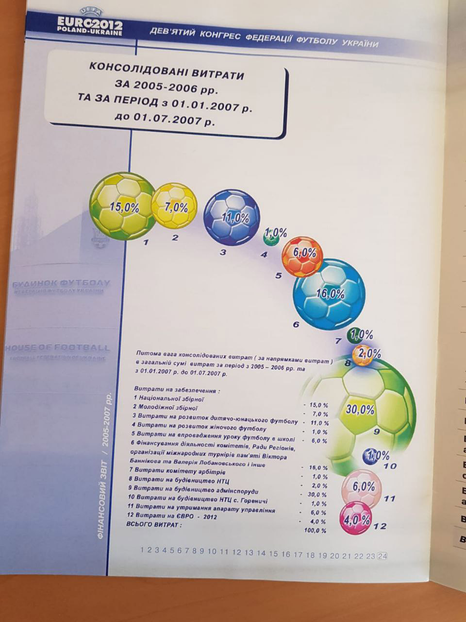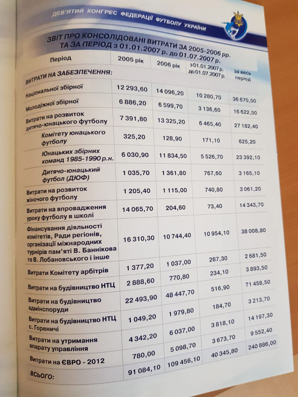 Ниже в качестве примера привожу фрагменты официального буклета IX Конгресса ФФУ, состоявшегося 14.09.2007 г. Такие буклеты всегда были абсолютно публичными документами и содержали в себе, в том числе, и финансовый отчет о деятельности ФФУ, и отчет об аудите, и много другое. Полезная статистика особенно для сравнительного анализа. К слову, при Суркисе ее можно было найти в свободном доступе на официальном сайте федерации.