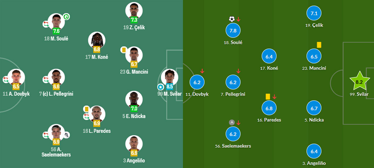 SofaScore поставил Довбику 6.5 балла, что оказалось самой низкой оценкой среди игроков основного состава «Ромы» на этот матч.