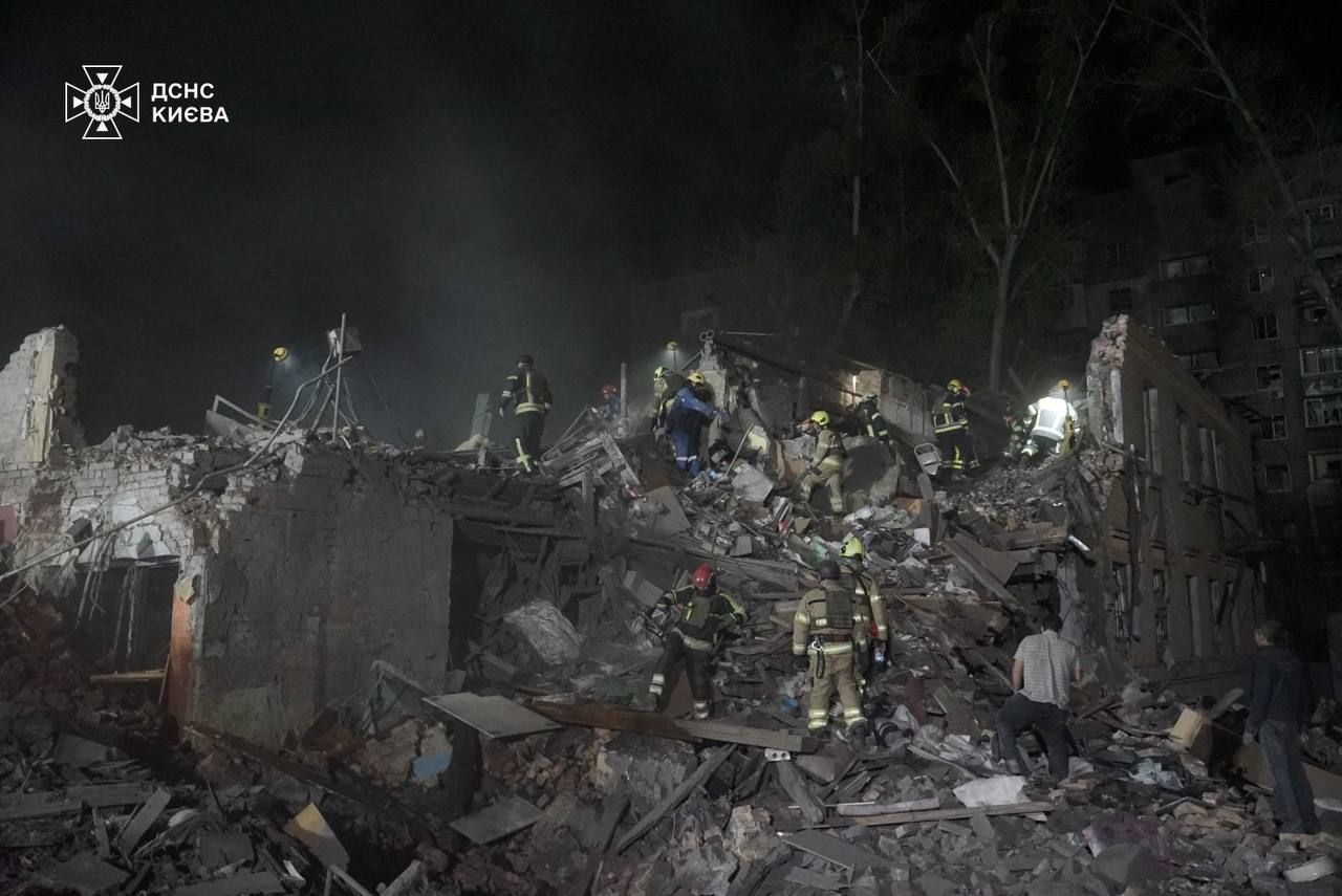 Пострадали Святошинский, Голосеевский, Шевченковский, Соломенский и Оболонский районы. Разрушены дома, под завалами оказались люди, горели автомобили, гаражи, админздания, крыши нежилых помещений, склад.
