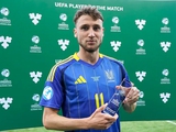 Владислав Ванат с призом УЕФА лучшему игроку матчаНапомним, в этой встрече 23-летний форвард стал автором первого гола украинской «молодежки».