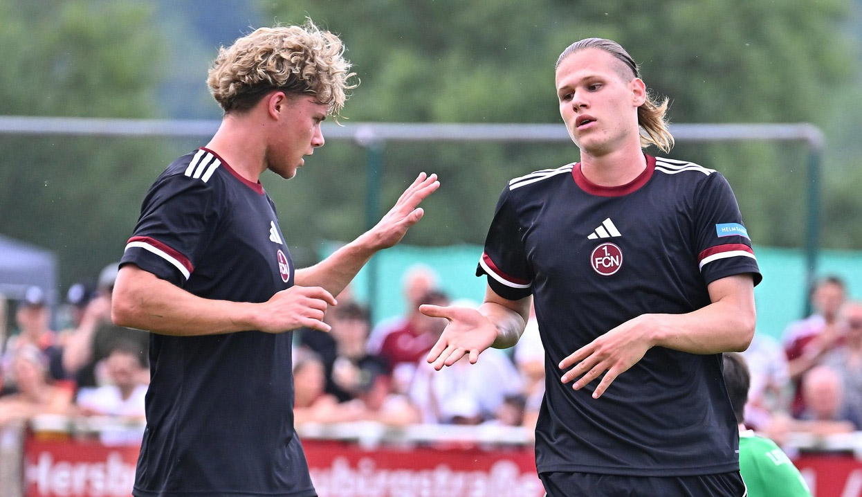 Артем Степанов (справа)Напомним, на днях 17-летний футболист оформил покер в своём дебютном поединке за «Нюрнберг». А вчера молодой форвард записал себе в активе дубль в контрольном матче с представителем районной лиги «Шпортфройнде» (7:2).