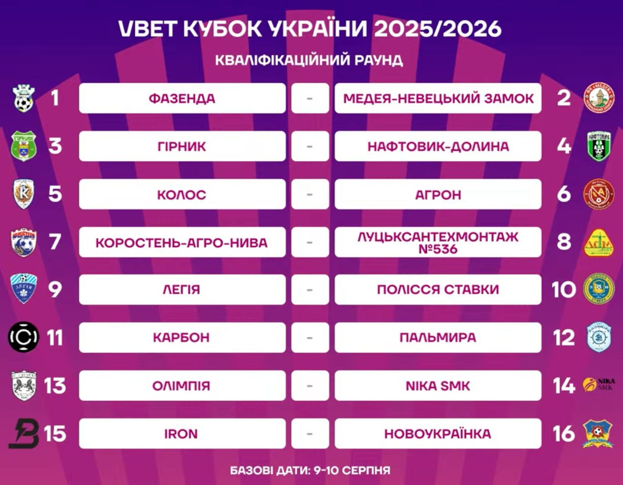 Результаты жеребьевки квалификационного раунда Кубка Украины-2025/2026