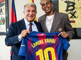 Жоан Лапорта и Ламин ЯмальПосле подписания нового соглашения с футболистом, которое рассчитано до 2031 года, президент «Барселоны» Жоан Лапорта вручил Ямалю футболку с 10-м номером. Ранее хавбек выступал под 19-м номером.