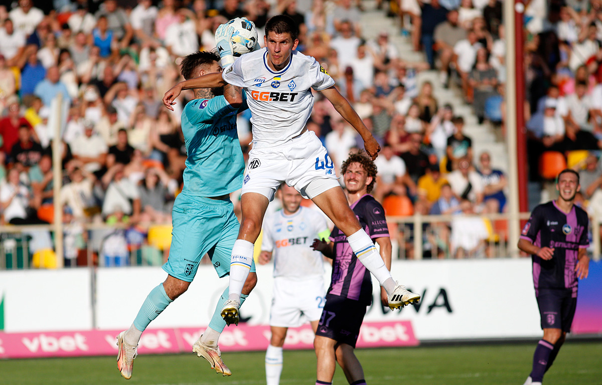 И все же на перерыв динамовцы ушли в роли победителя. Уже в компенсированное время к первому тайму Пихаленок прекрасно исполнил штрафной удар, отправив мяч на дальнюю штангу ворот «Эпицентра»: Михайленко просчитал эпизод и замкнул эту передачу головой — 1:2!