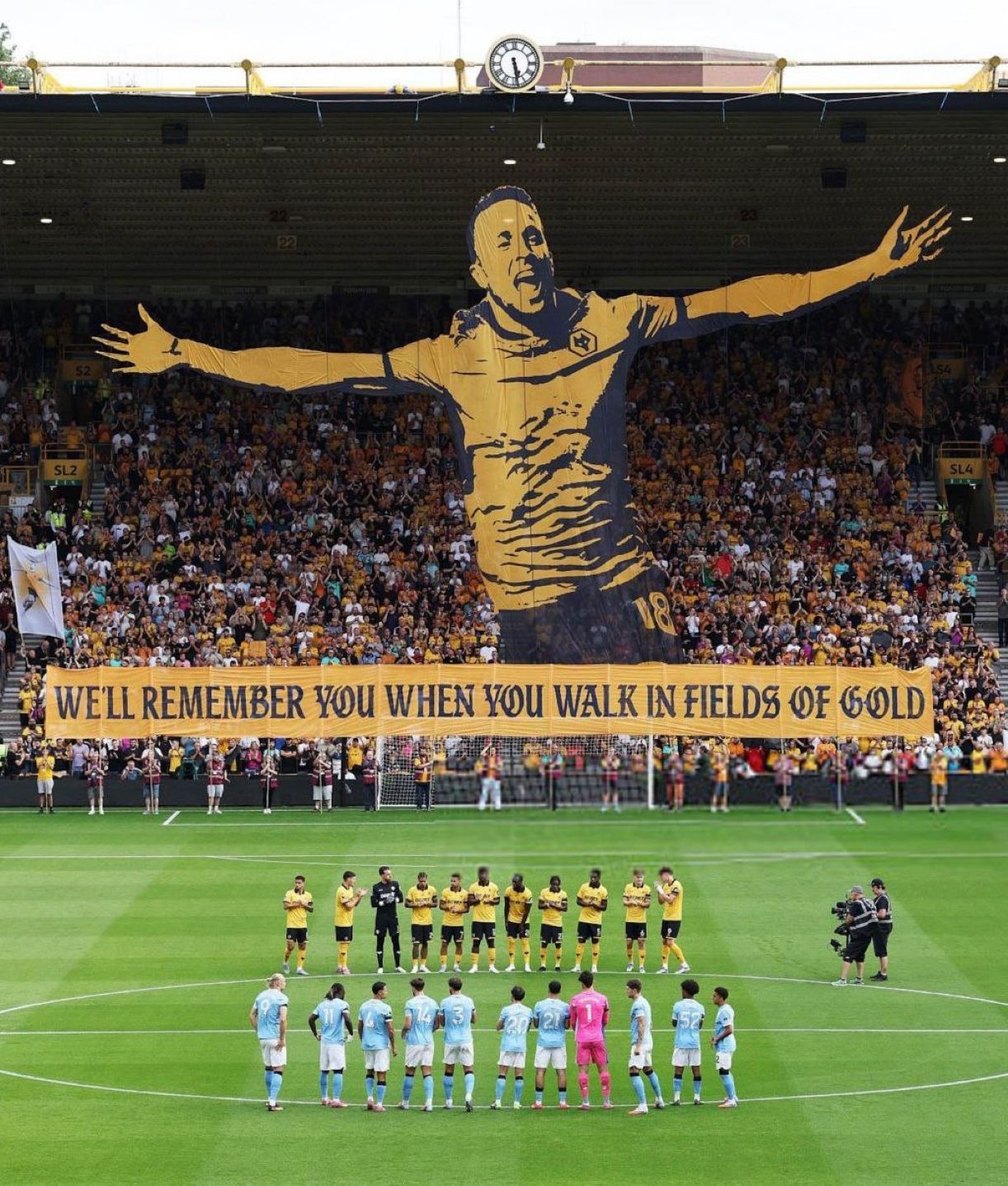 Они пришли на «Молинью Стэдиум», где десятки тысяч болельщиков «Вулверхэмптона» почтили память своего выдающегося игрока, сделав особое тифо с баннером: