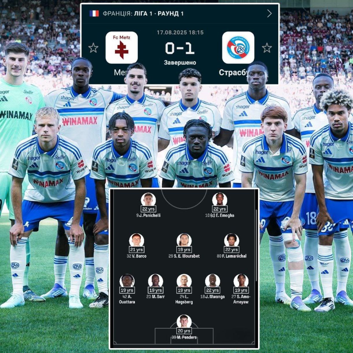 Таким составом со средним возрастом 20 лет «Страсбур» победил «Мец» со счетом 1:0, забив победный мяч на 86-ой минуте!